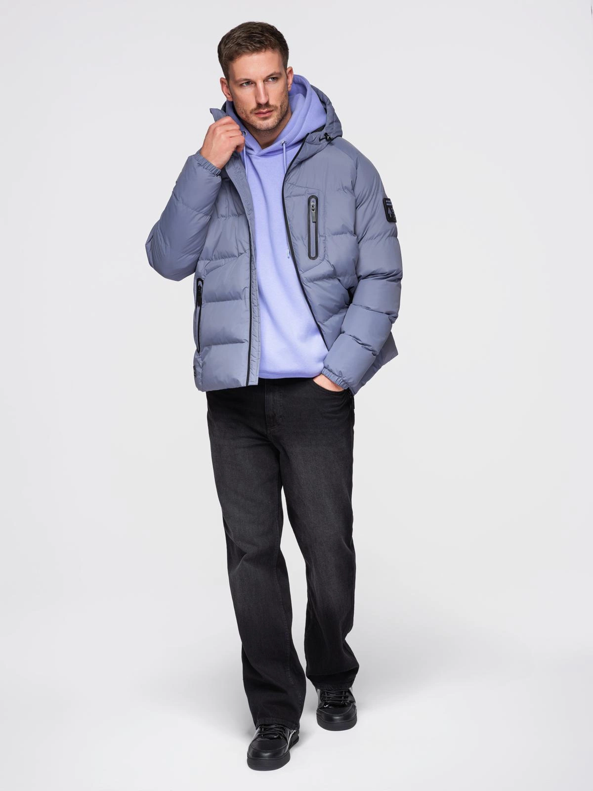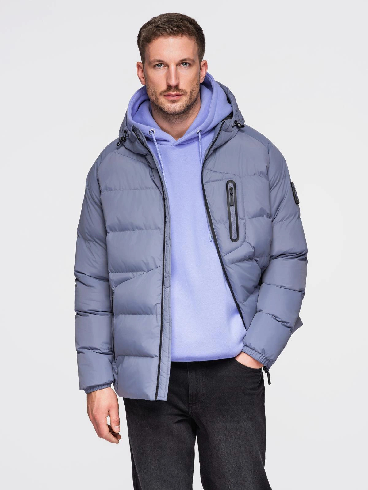Pánská zateplená prošívaná bunda s raglánovými rukávy - faded purple V6 OM-JAHP-0302