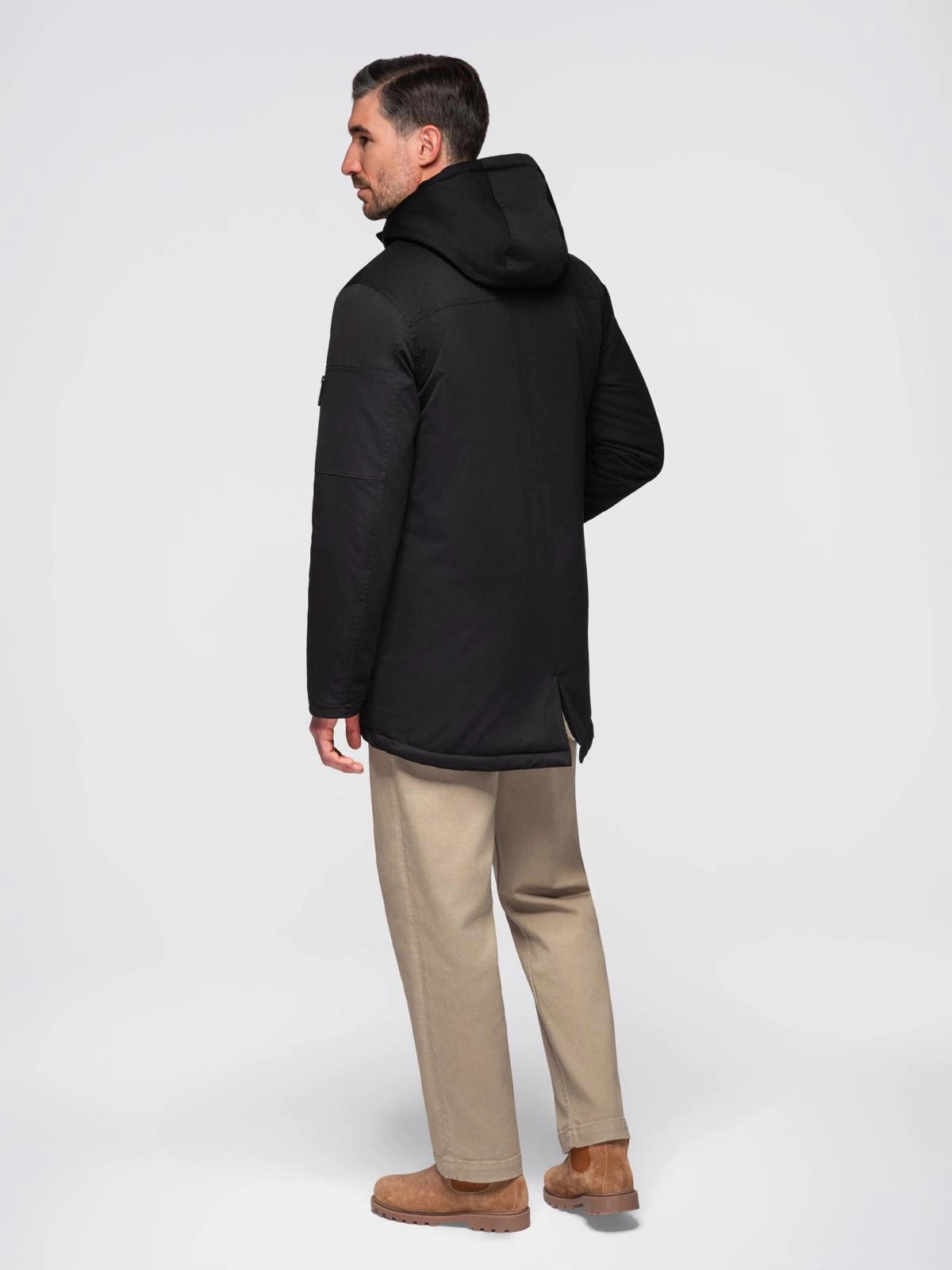 Pánská dlouhá bunda parka s ovčí kůží - černá V4 OM-JAPJ-0316