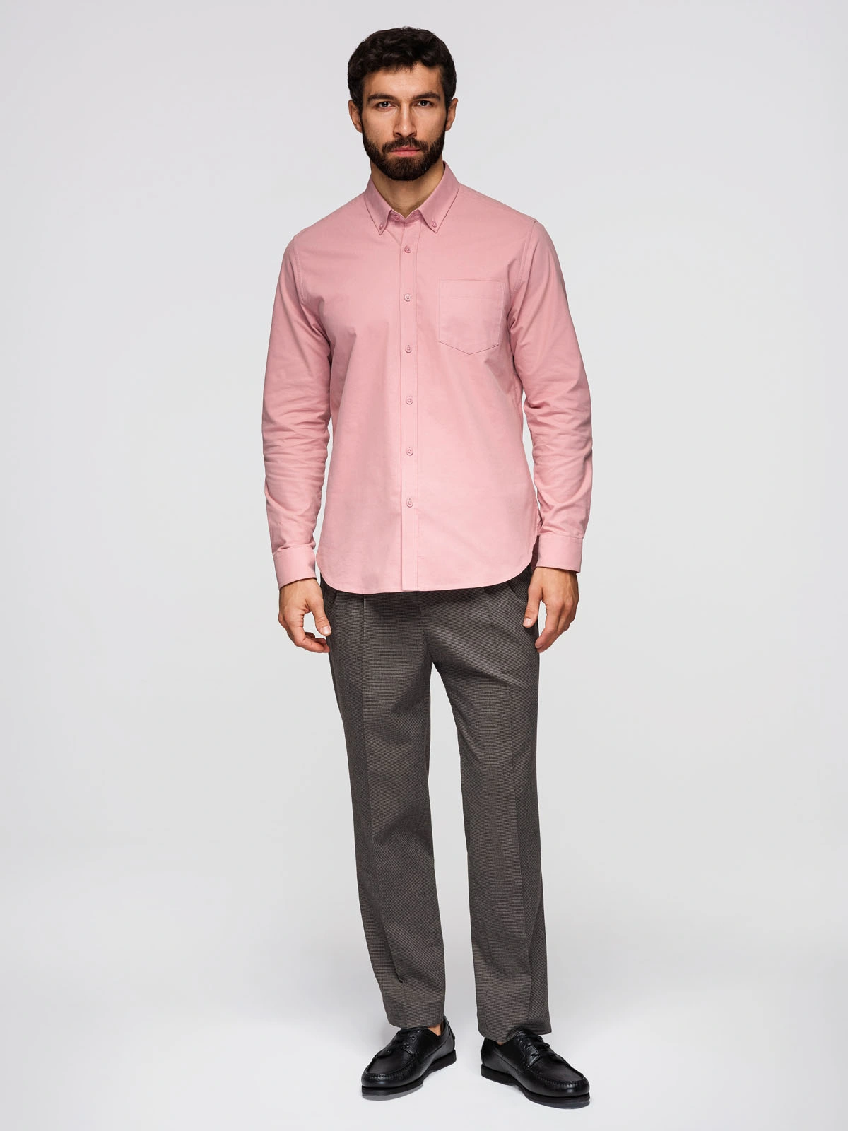 Pánská bavlněná košile REGULAR FIT s kapsou - růžová V3 K700