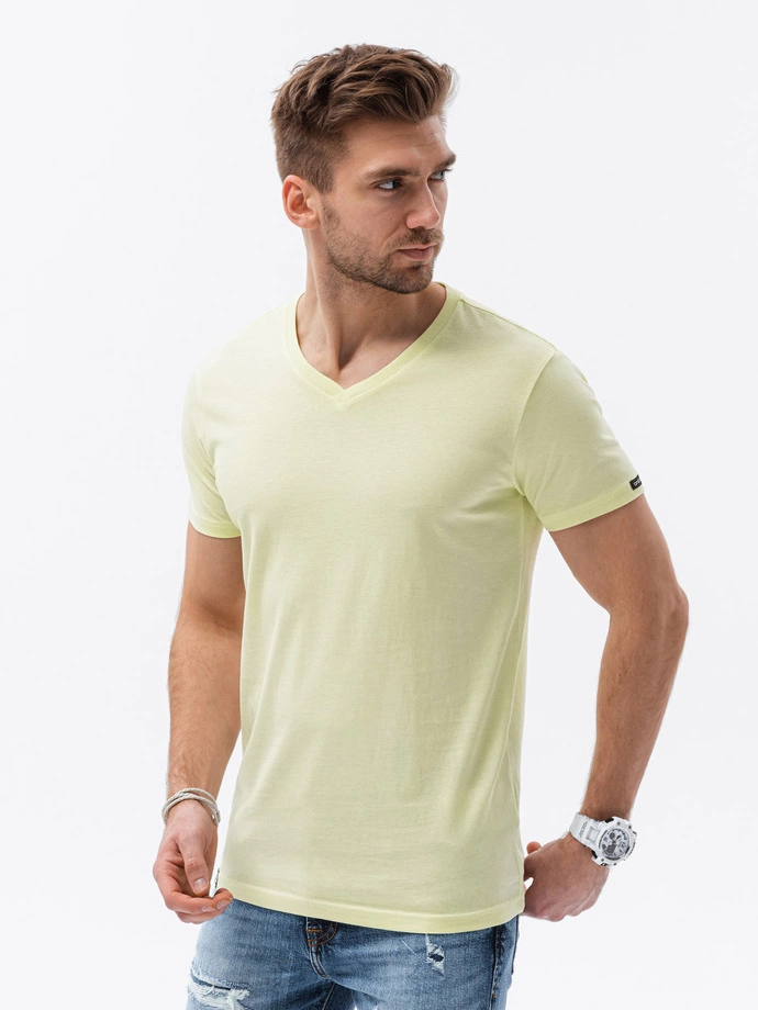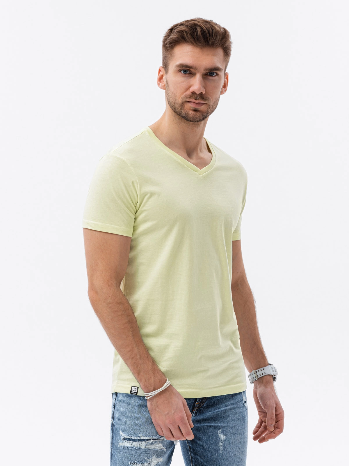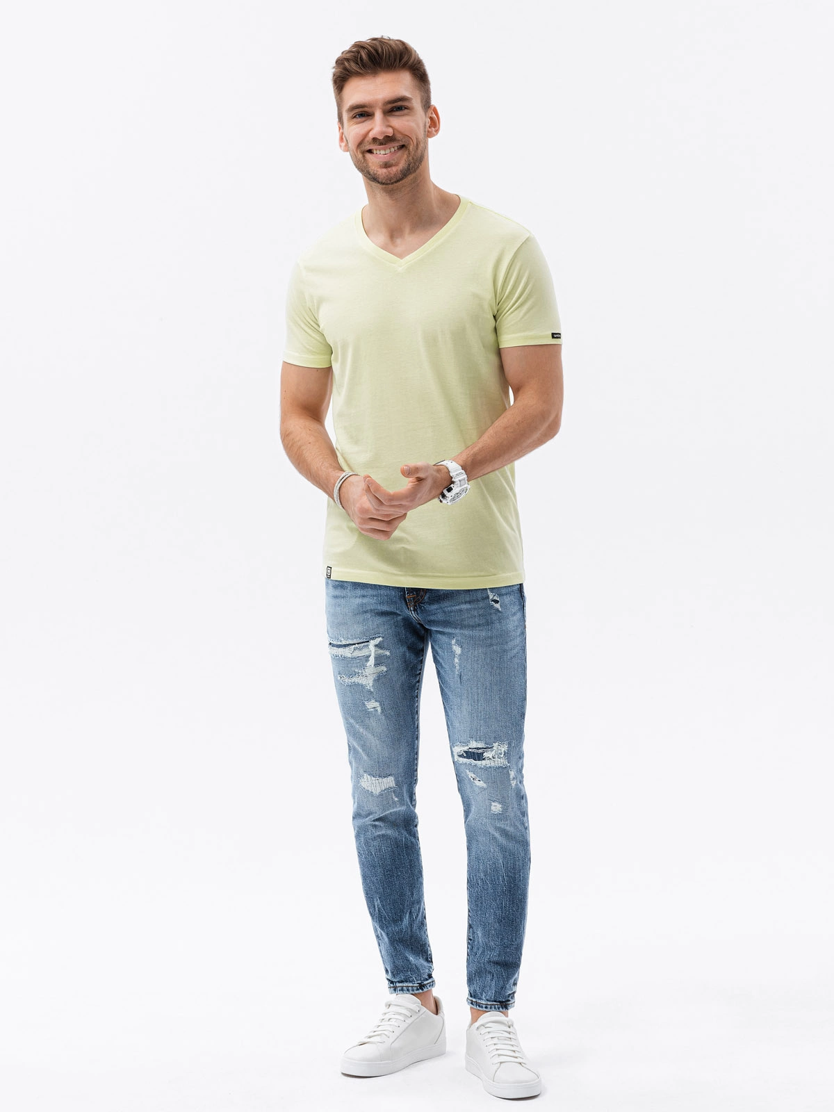 Klasické pánské tričko BASIC s výstřihem - limetkově zelené V24 S1369