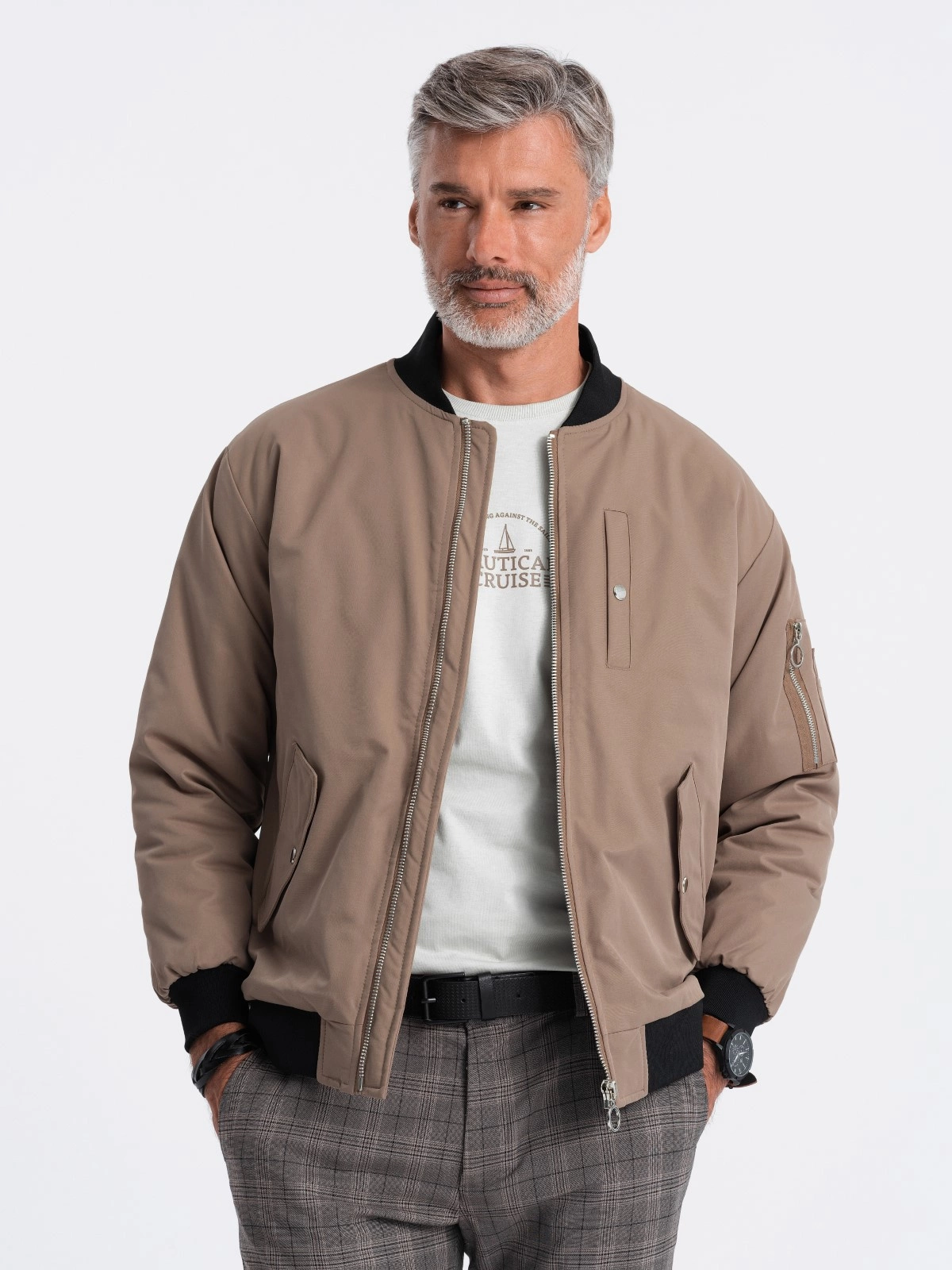 Pánská zateplená bunda bomber 516C - béžová V9