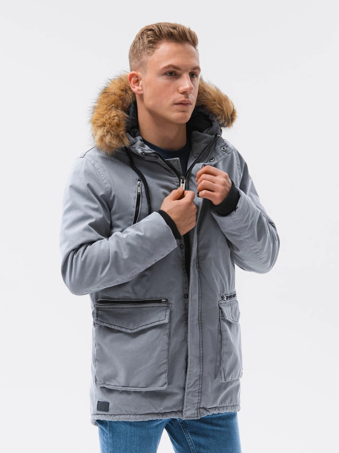 Pánská zimní prošívaná bunda - šedá C512