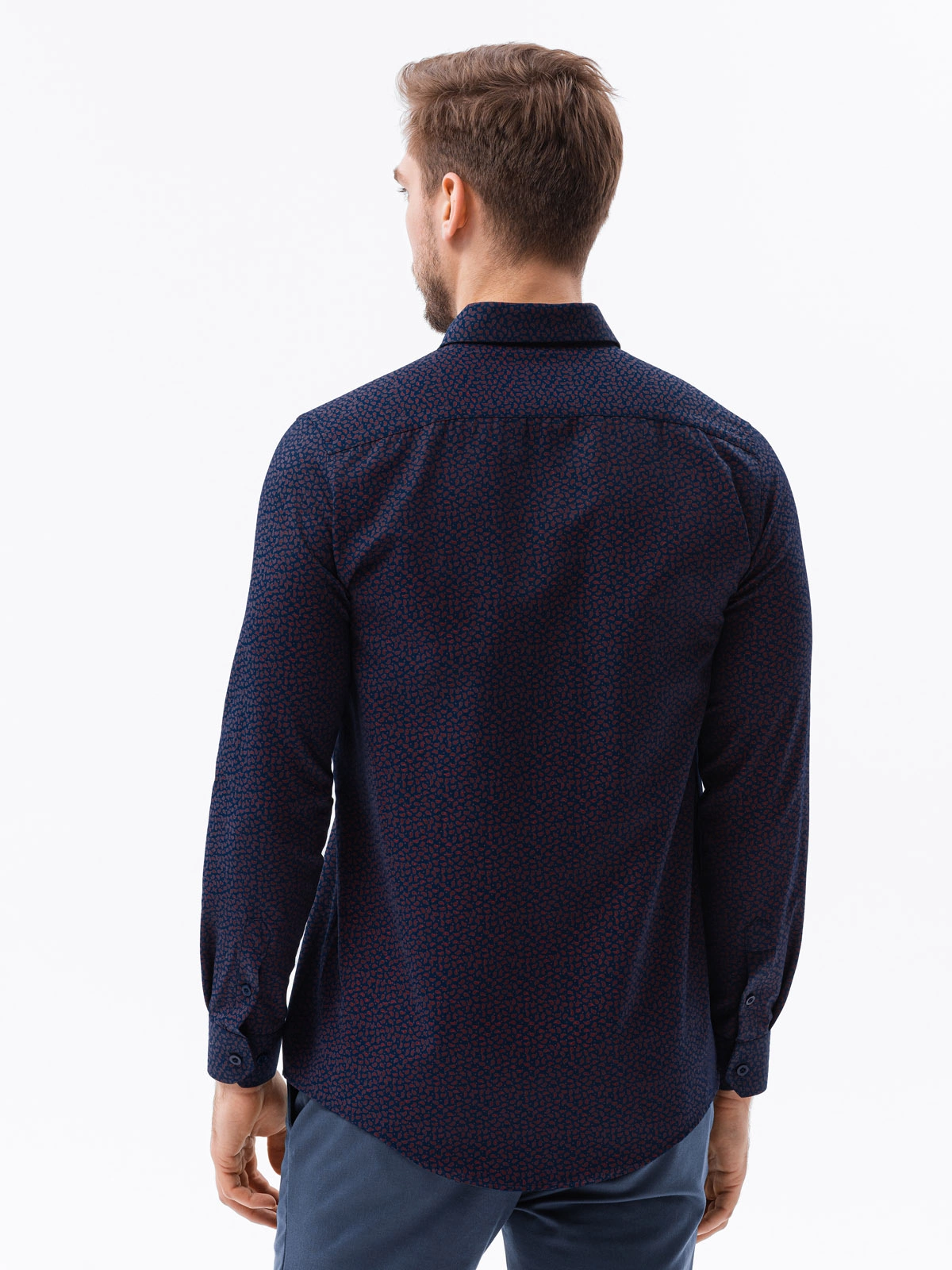 Pánská košile s dlouhým rukávem - námořnická modrá/červená K617