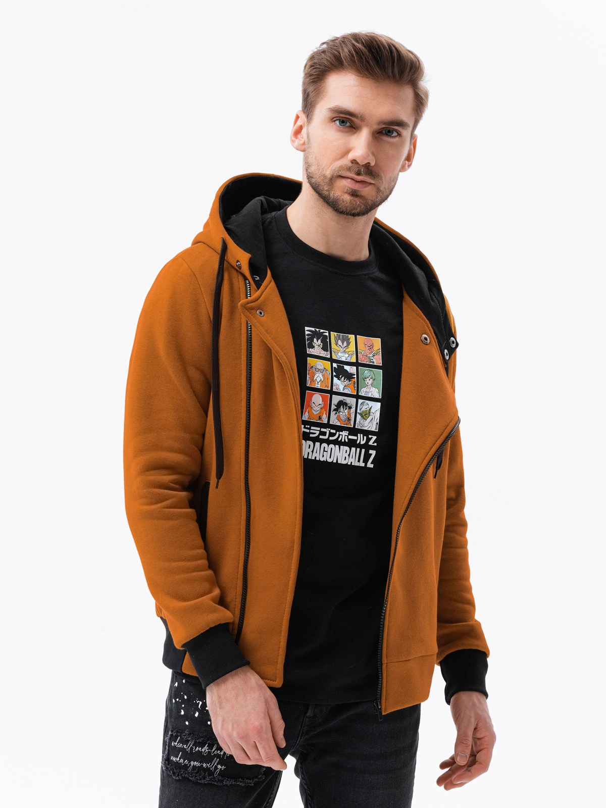 Pánská mikina na zip s kapucí - rezavě hnědá B297