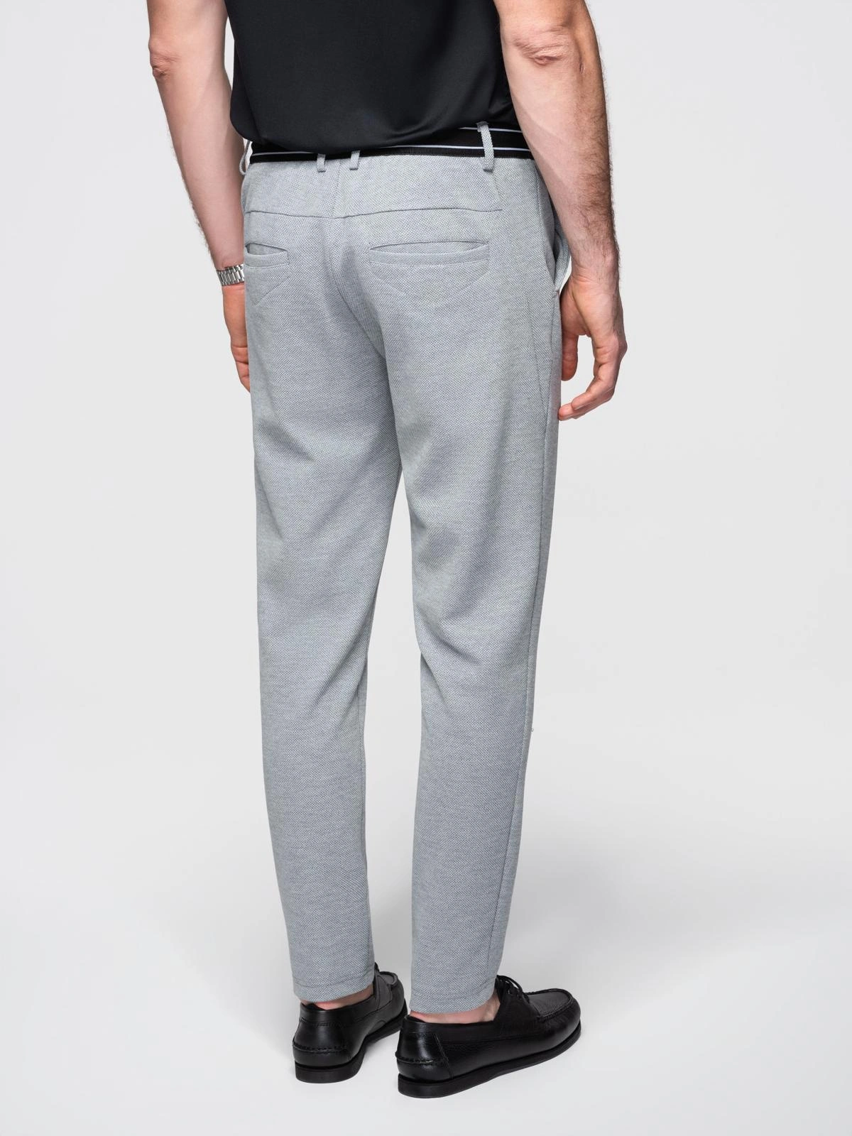 Men's knitted pants with elastic waistband - light grey V1 OM-PACP-0116