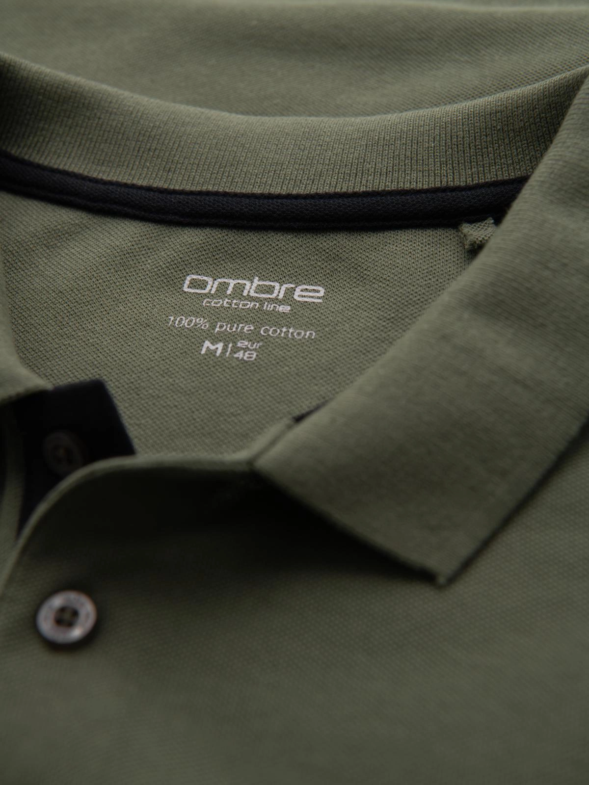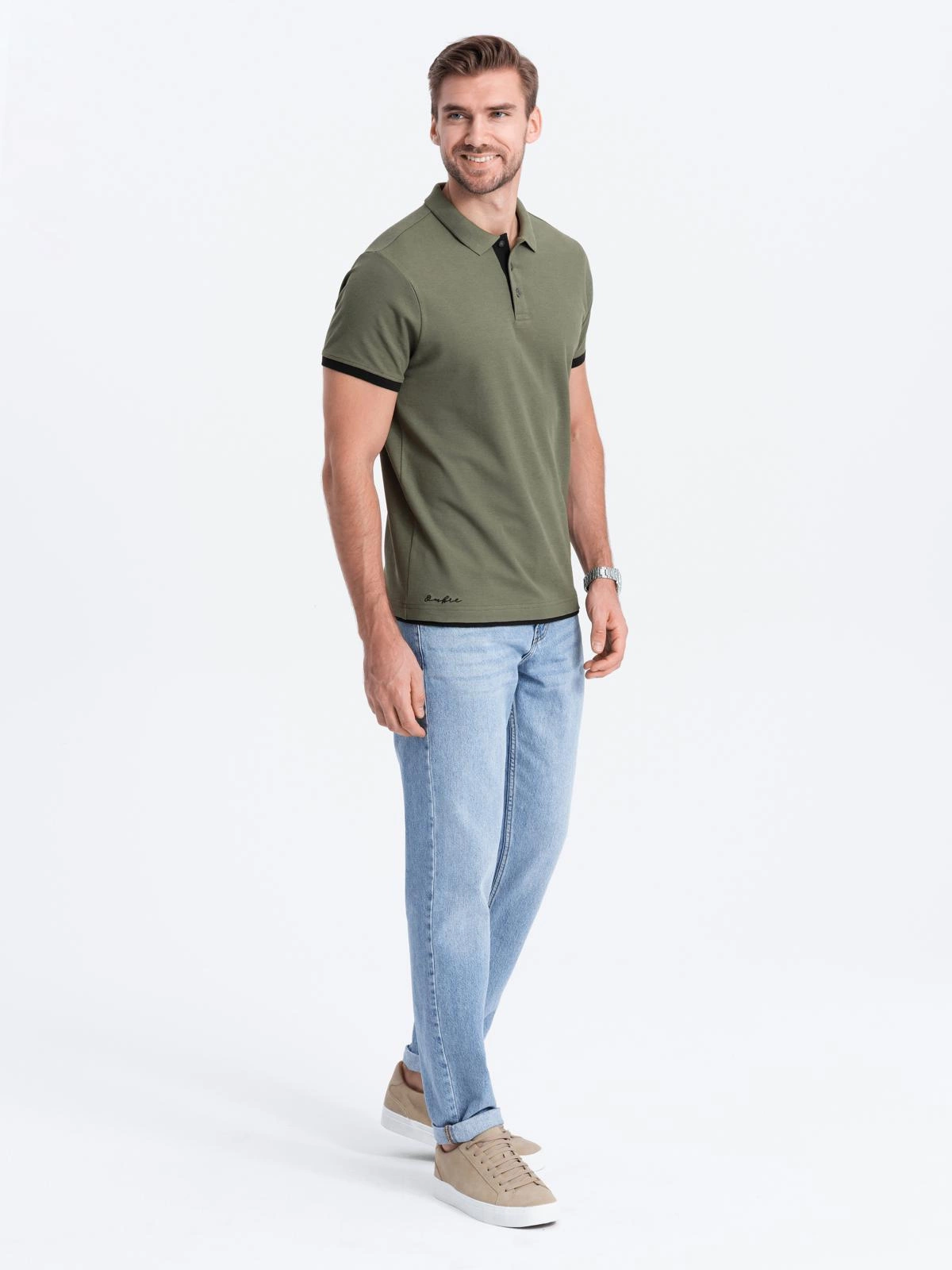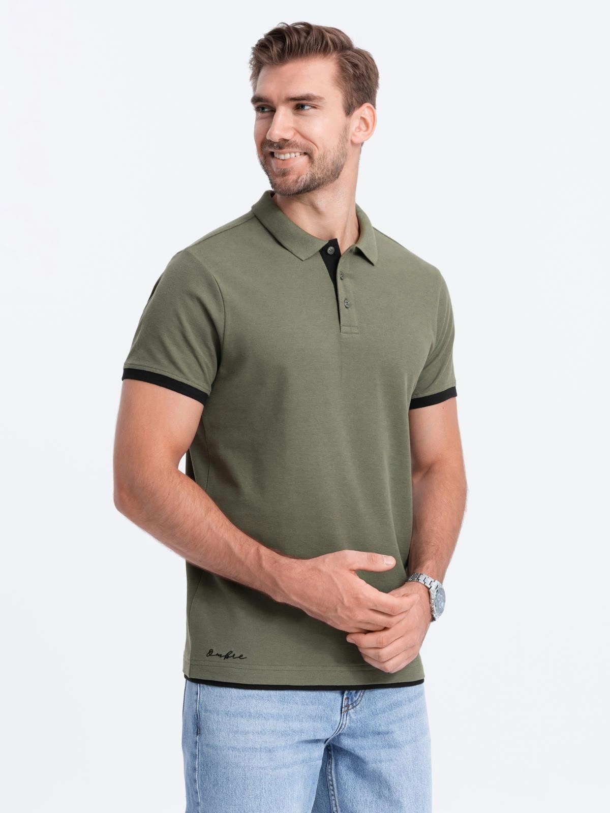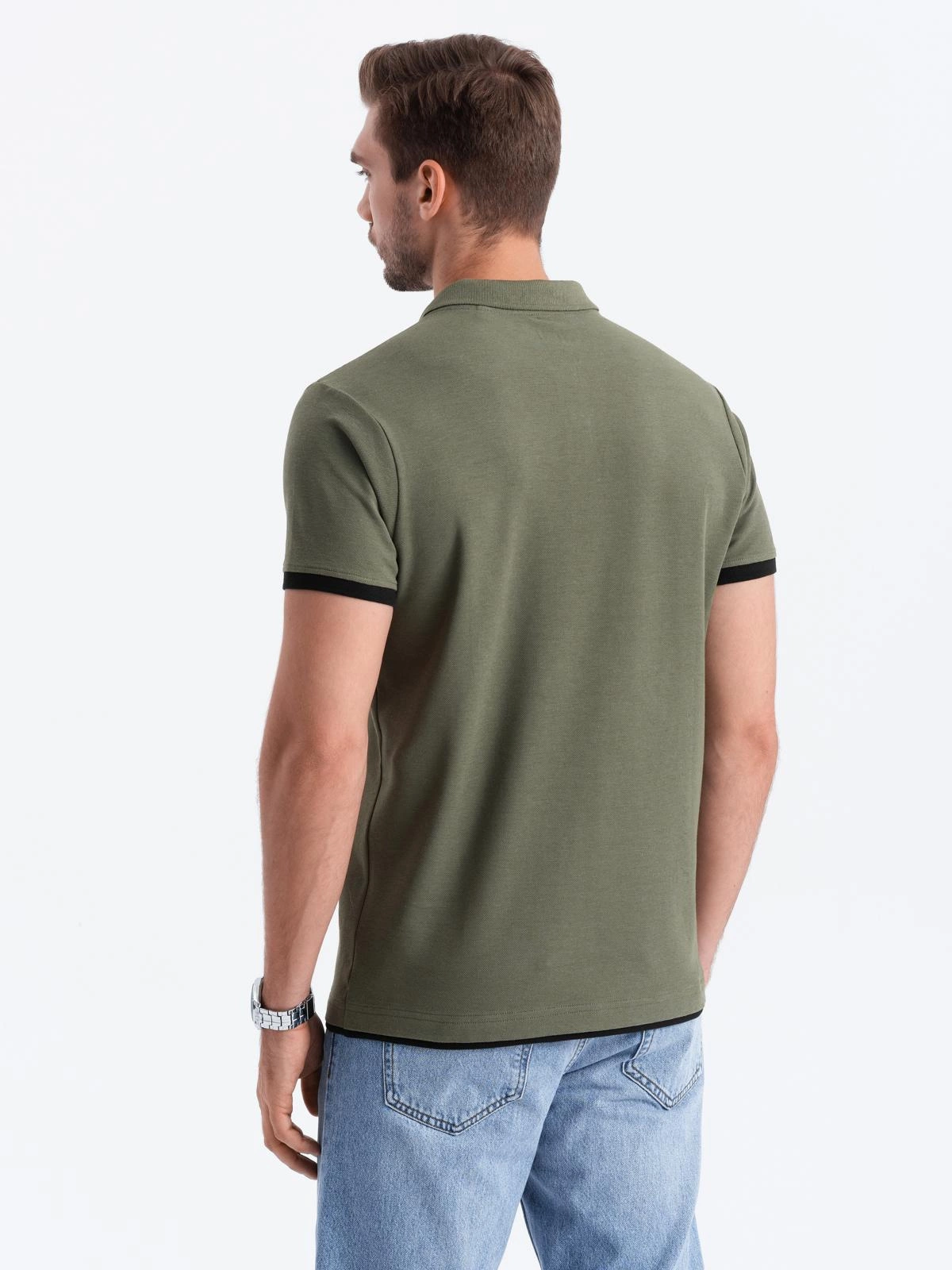 Men's cotton polo shirt with contrast trim - olive V6 OM-POSS-0113
