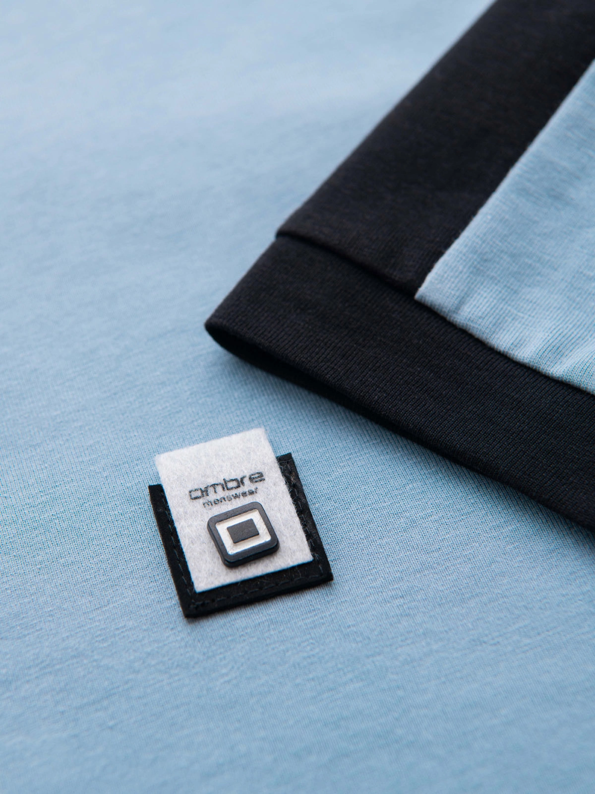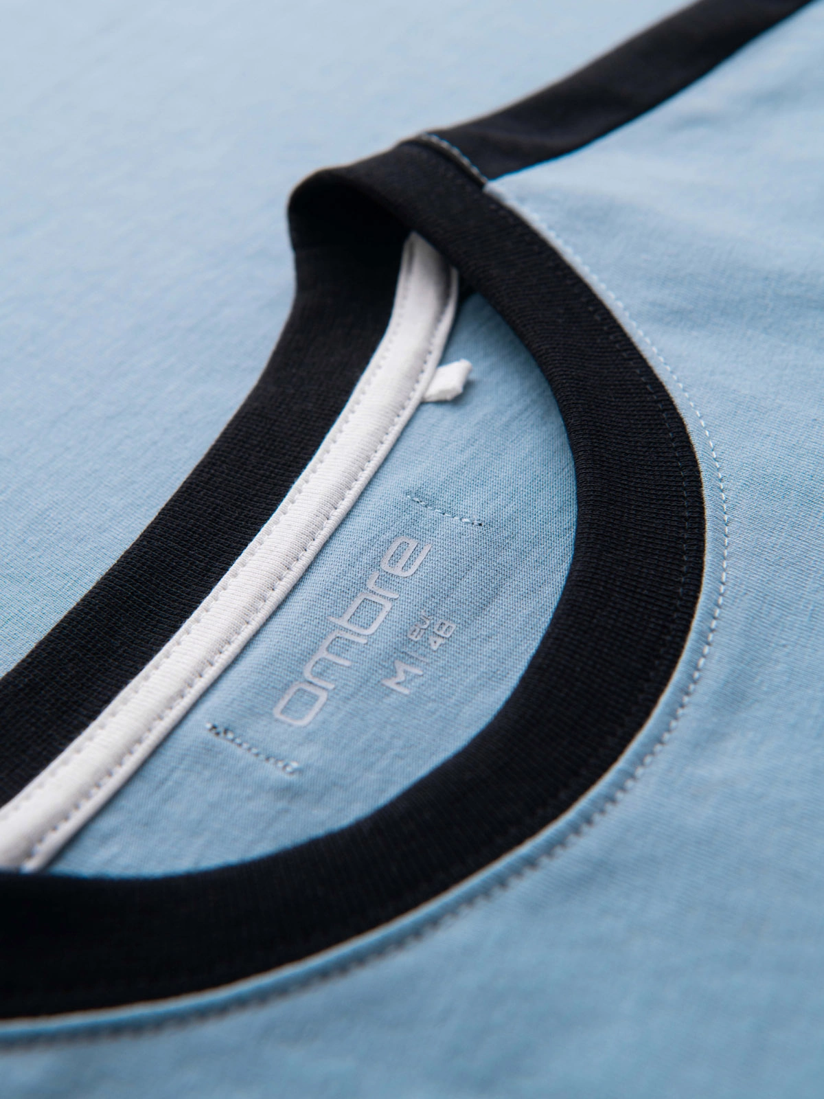 Men's t-shirt with contrasting stripes - light blue V3 OM-TSCT-0115