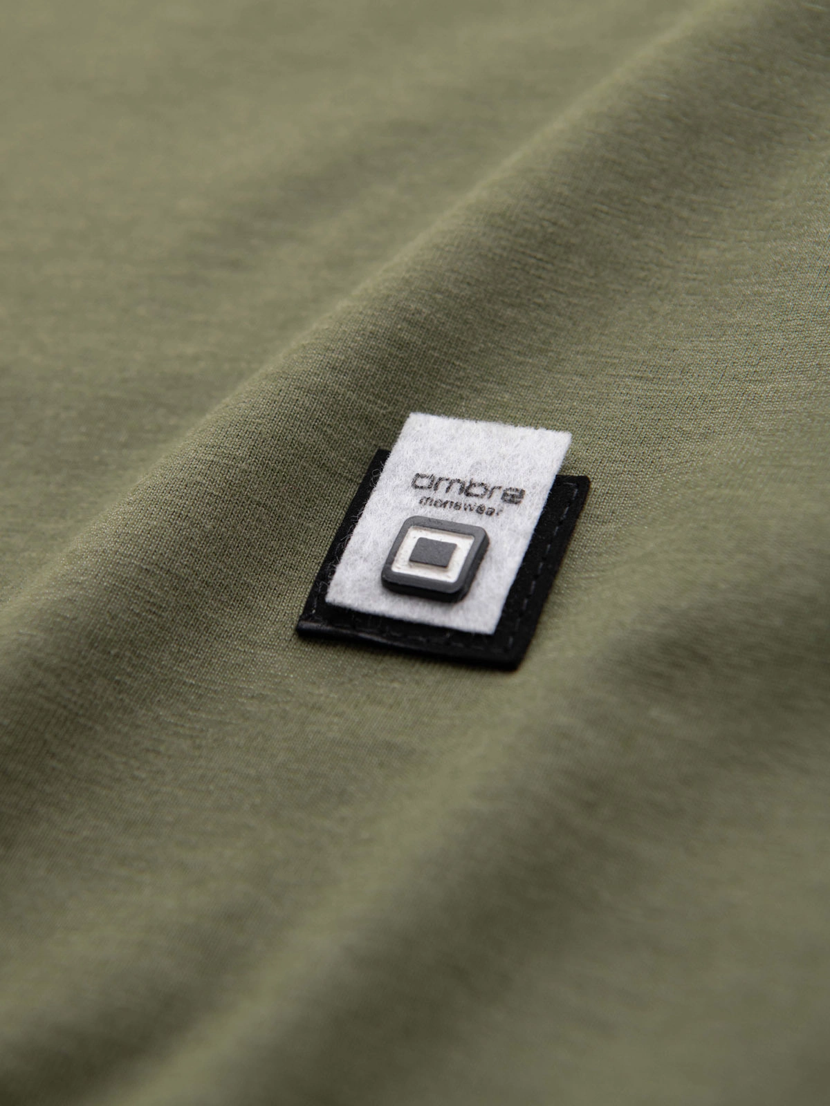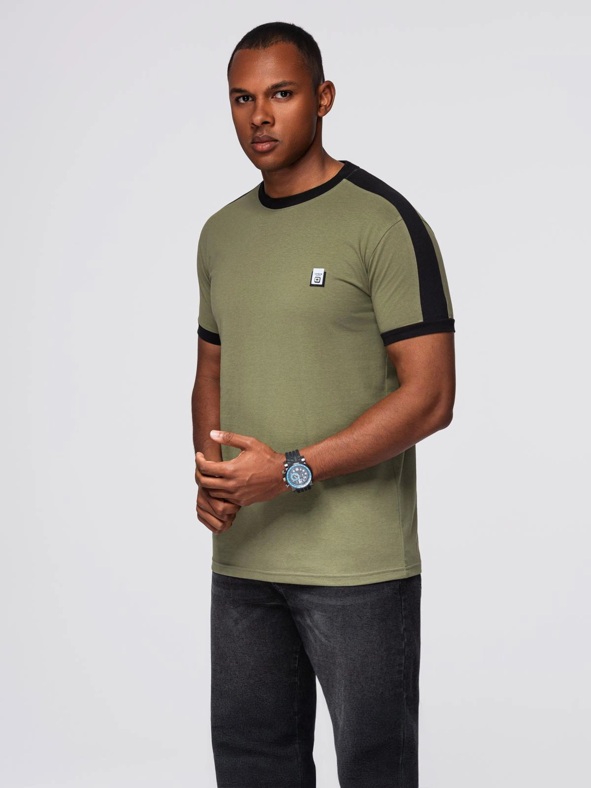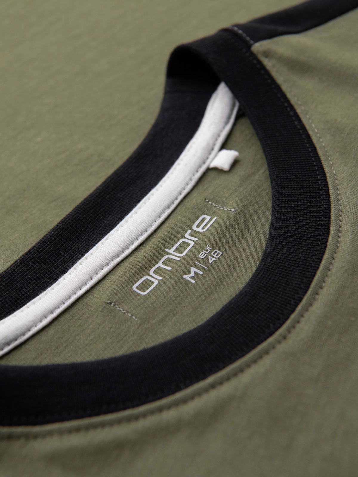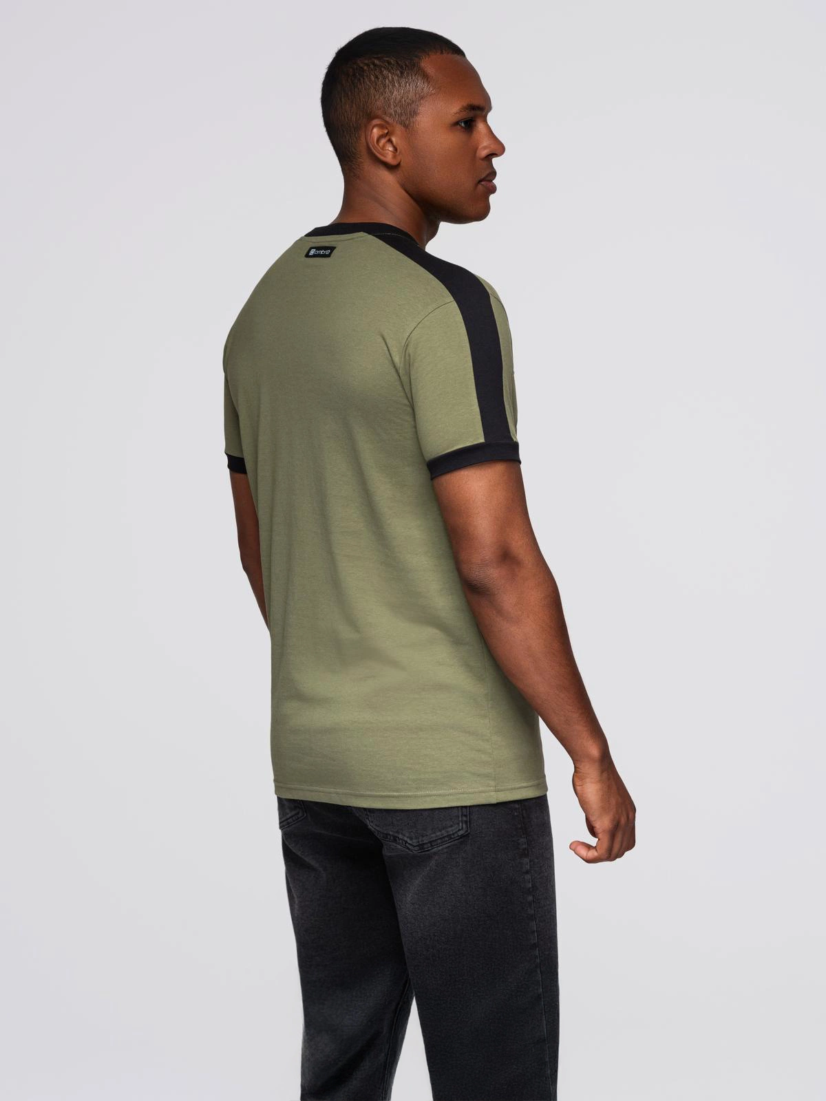 Men's T-shirt with contrasting stripes - olive V4 OM-TSCT-0115