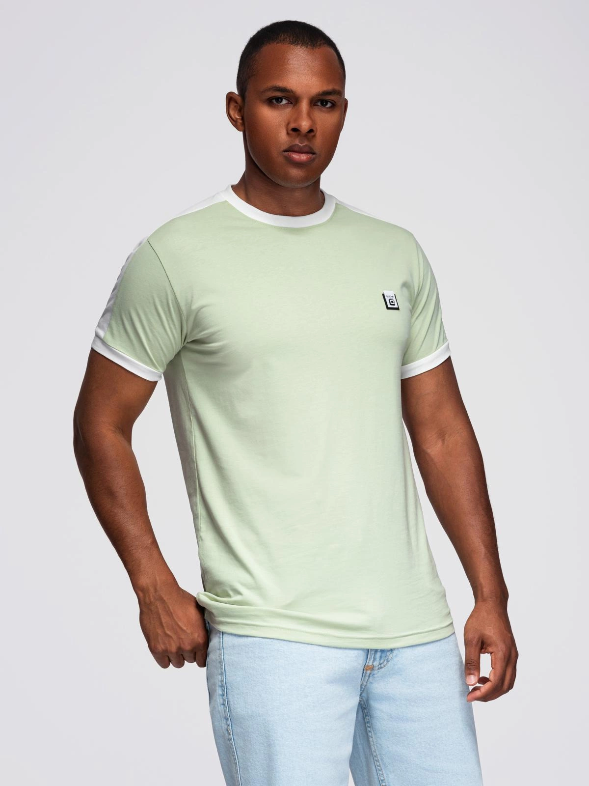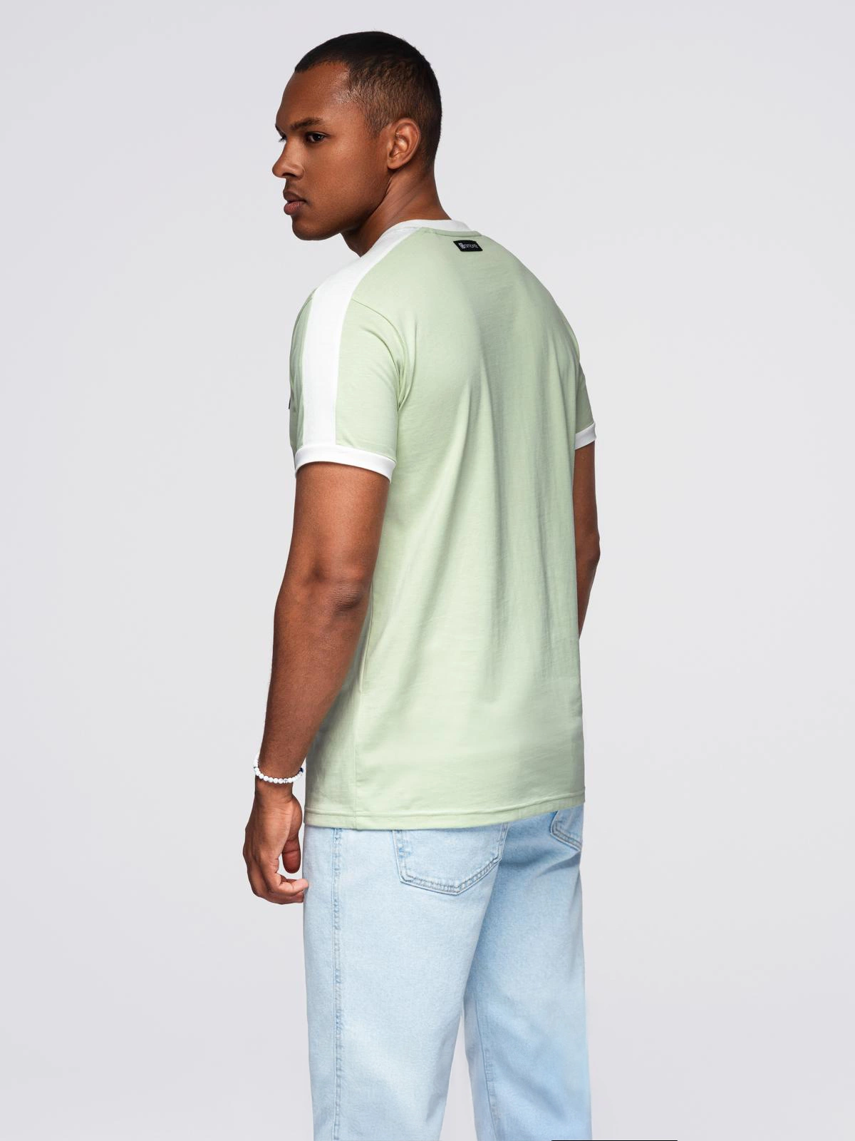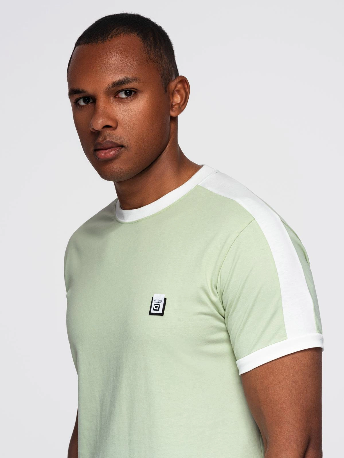 Men's T-shirt with contrasting stripes - pistachio V9 OM-TSCT-0115