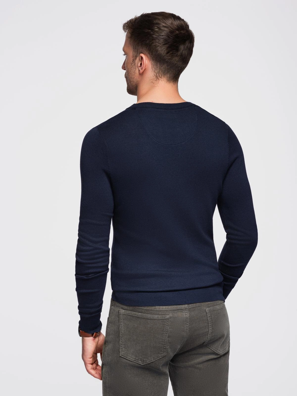 Classic men's sweater with round neckline - navy blue V9 OM-SWBS-0106