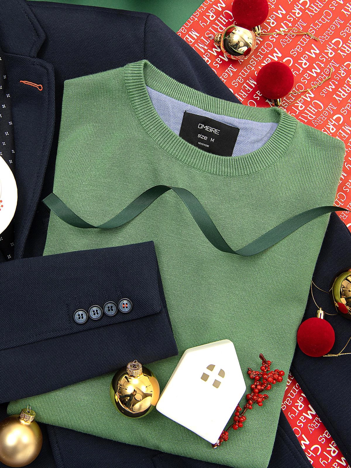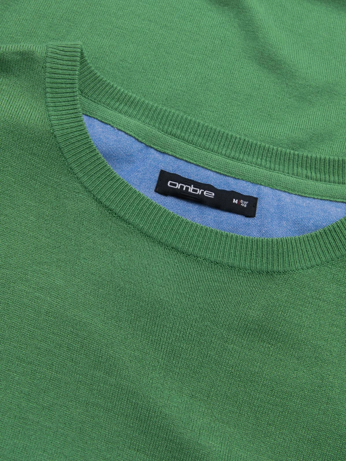 Classic men's sweater with round neckline - green V13 OM-SWBS-0106