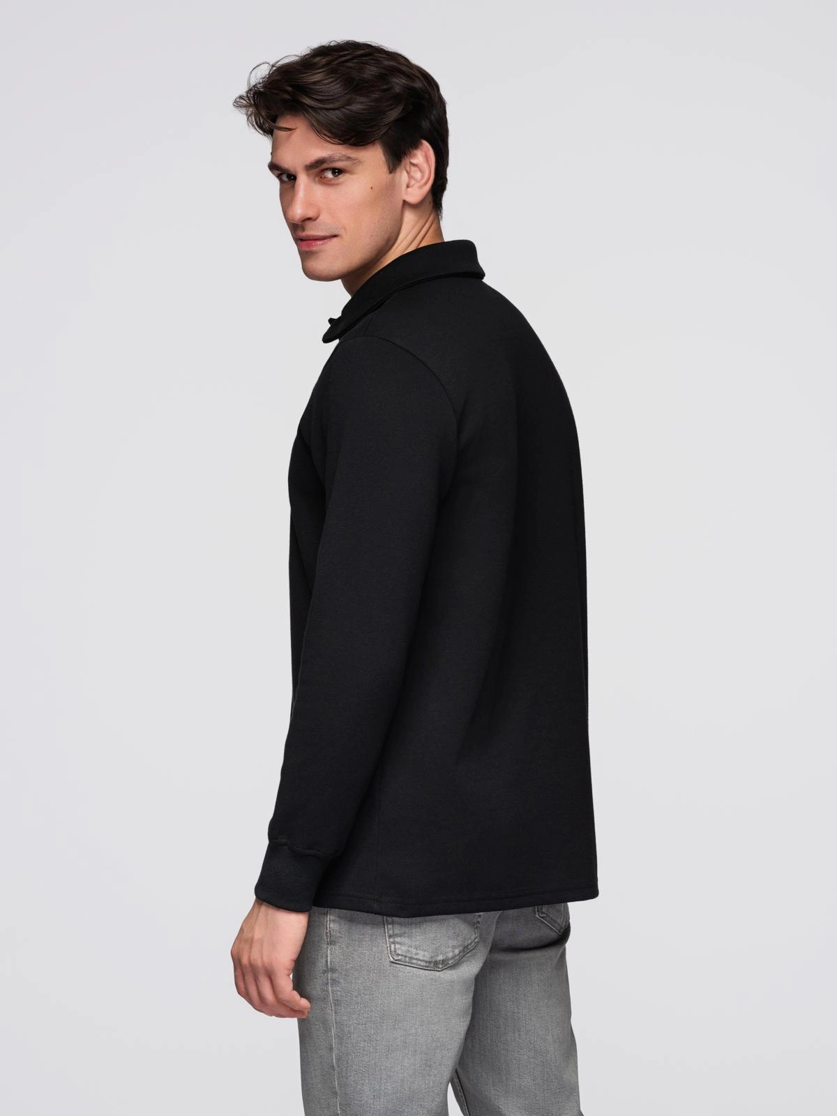 Men's structured knit polo collar sweatshirt - black V8 OM-SSNZ-0149