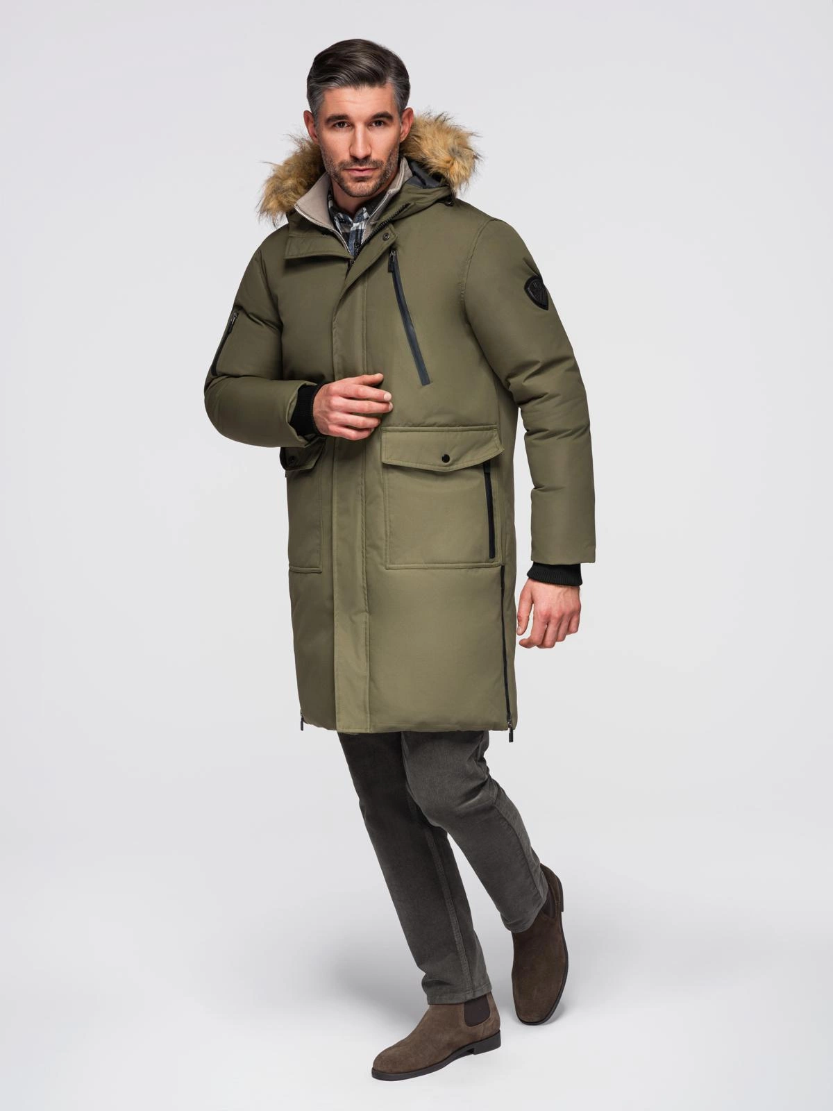 Alaskan men's winter jacket with detachable fur from the hood - dark olive green V3 OM-JALJ-0148