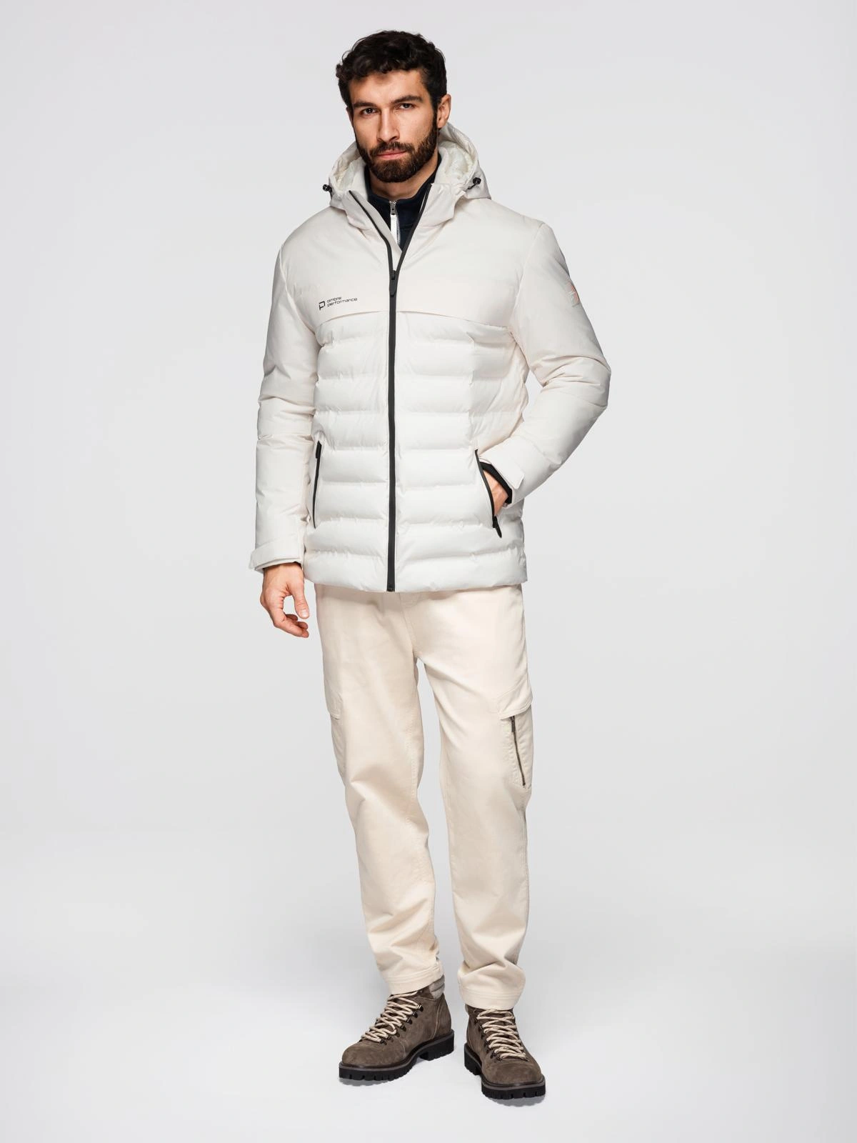 Men's winter jacket with detachable hood - cream V2 OM-JAHP-0150