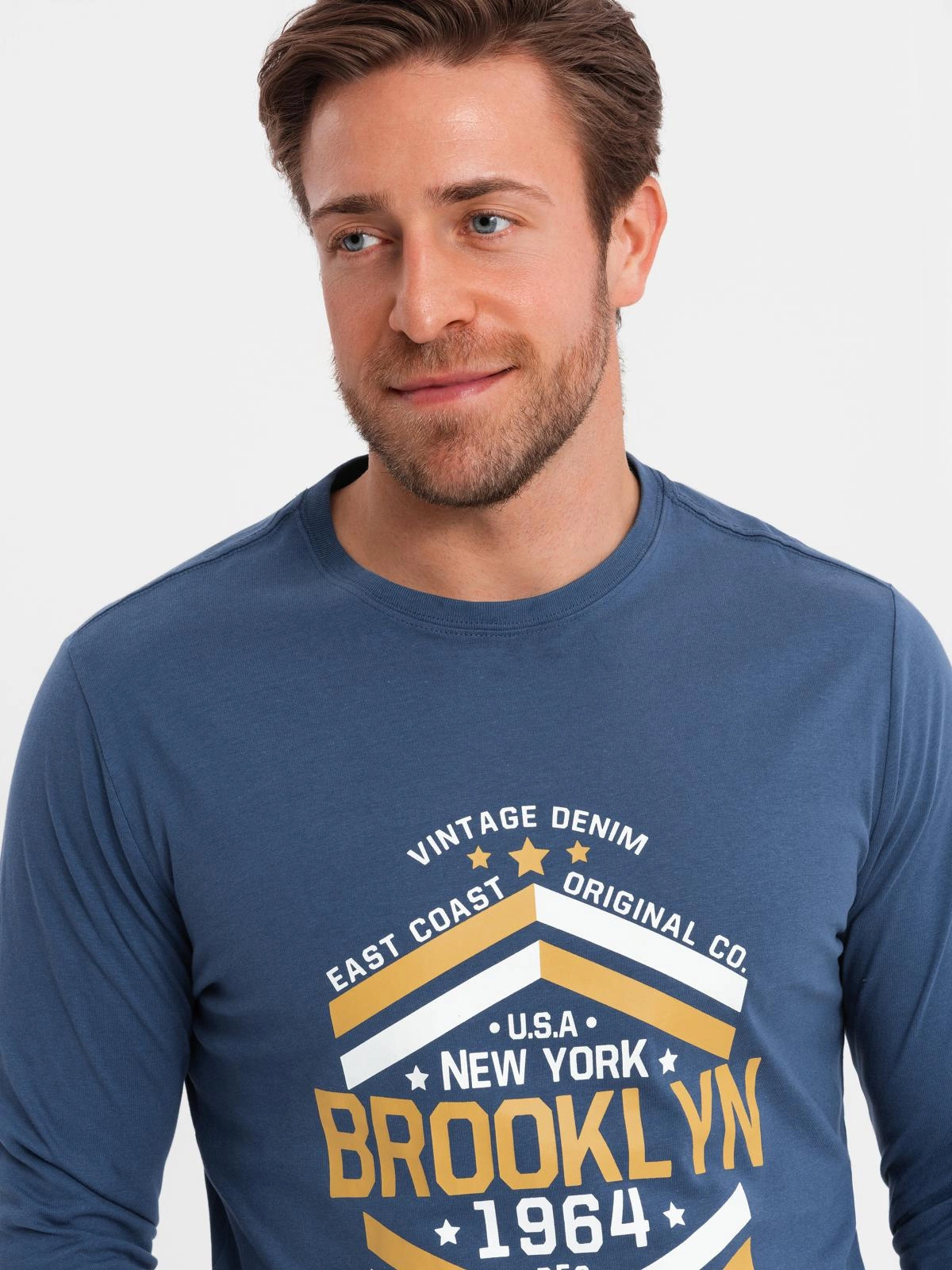 Men's collegiate style printed longsleeve - blue V2 OM-LSPT-0117