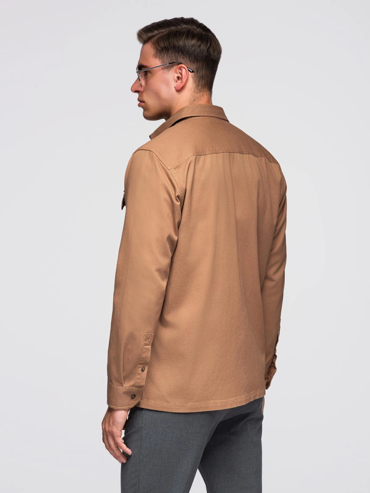 Men's REGULAR FIT cotton shirt with buttoned pockets - camel V2 OM-SHCS-0146