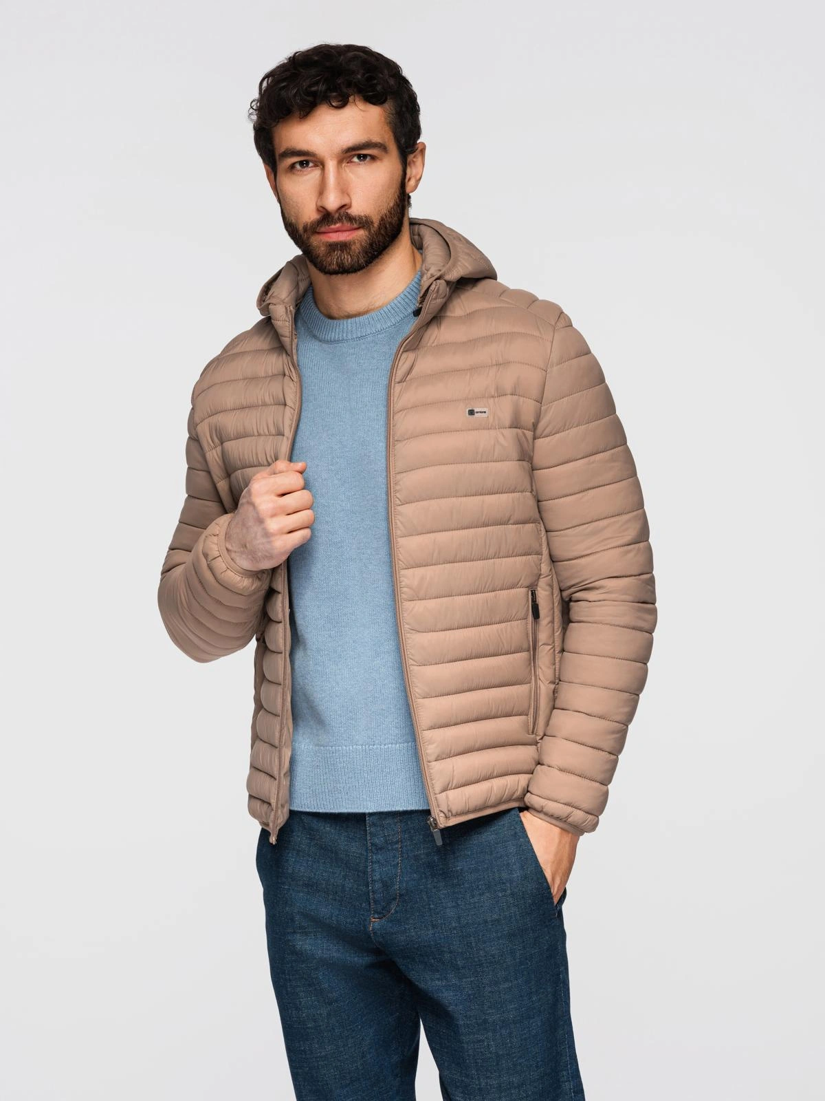 - Collar, sleeves and bottom of the jacket finished with a ribbed hem