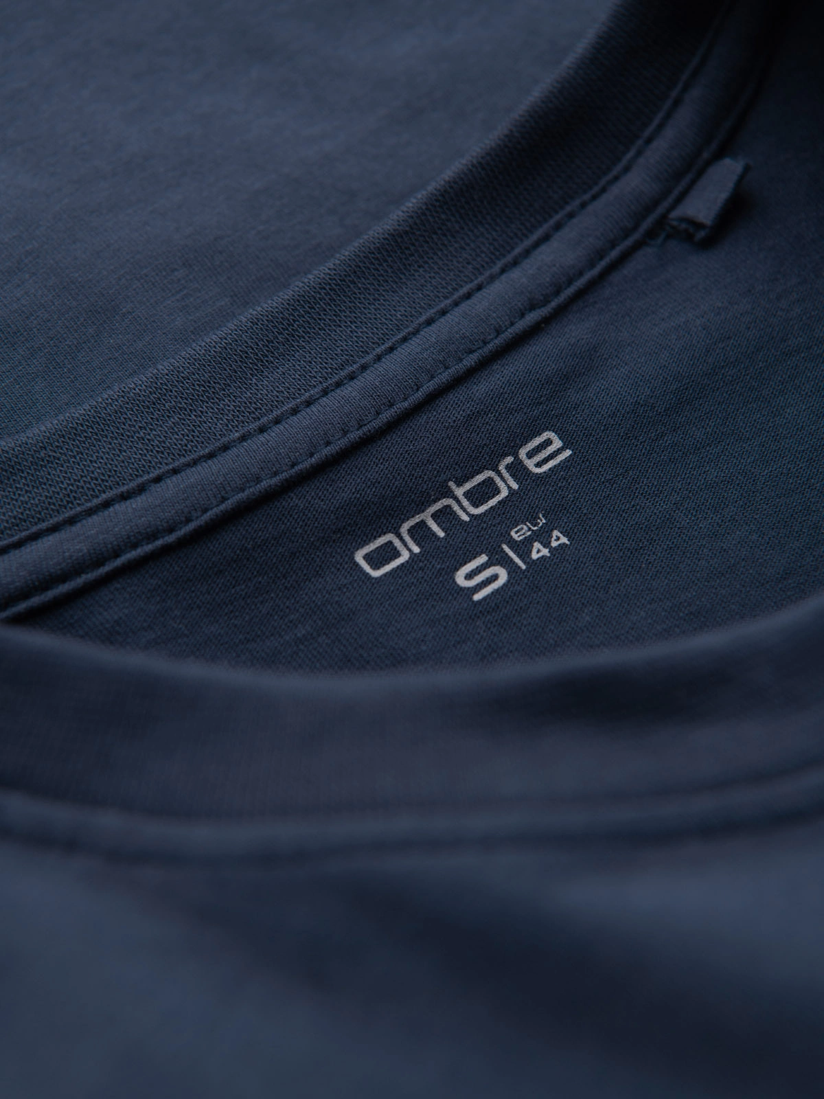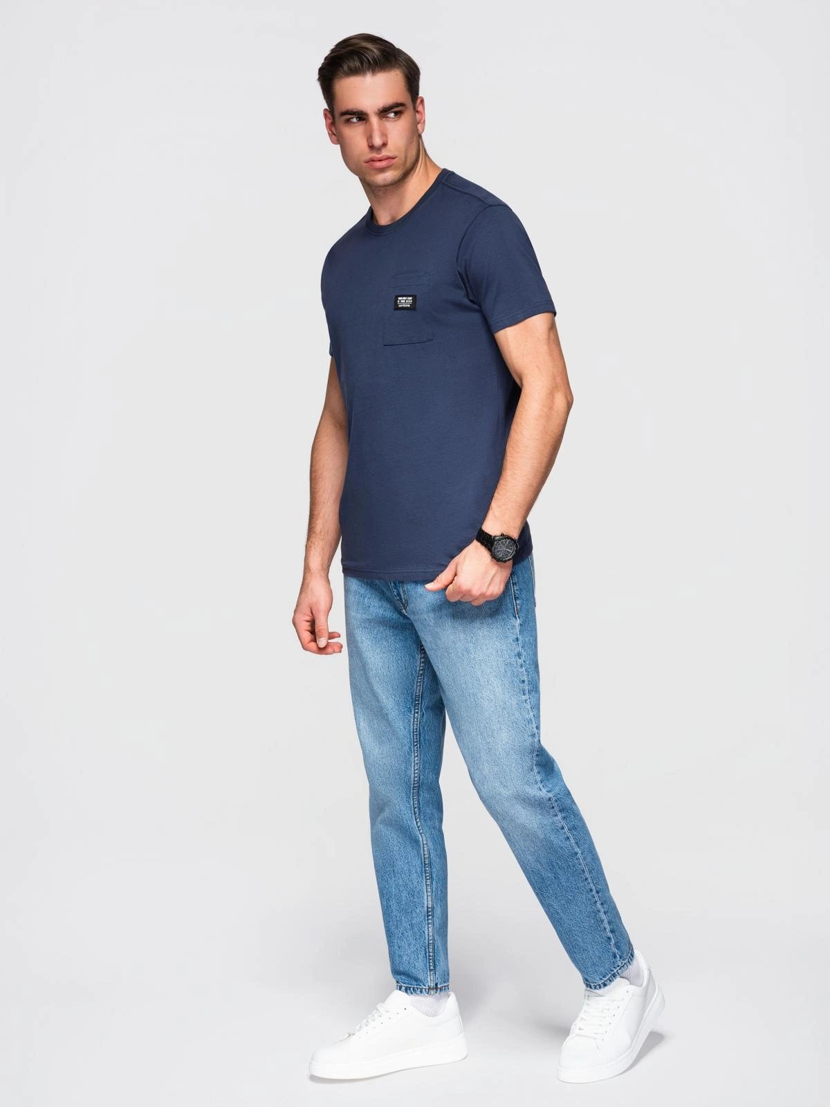 Men's casual t-shirt with pocket patch - navy blue V10 OM-TSCT-0109