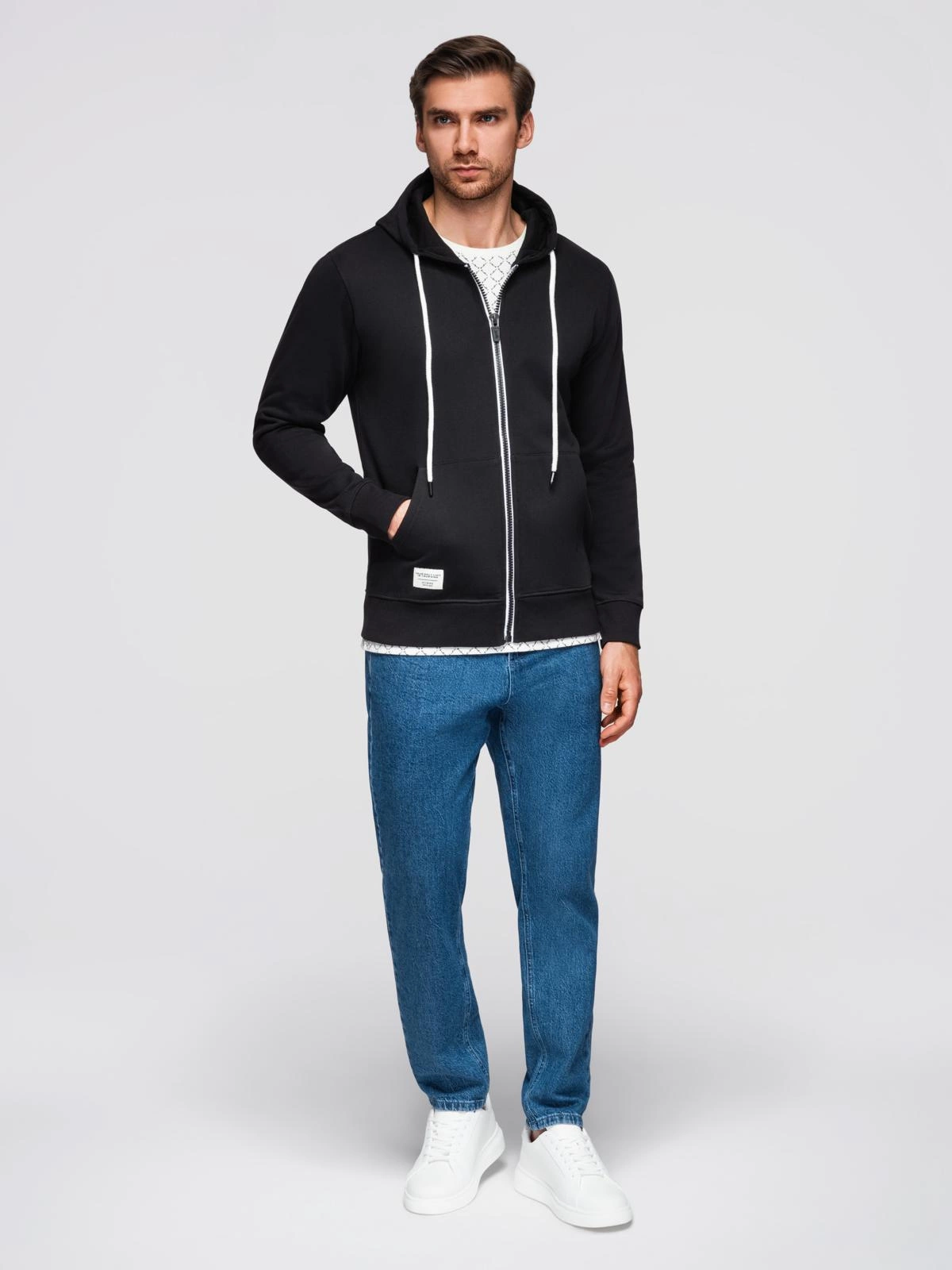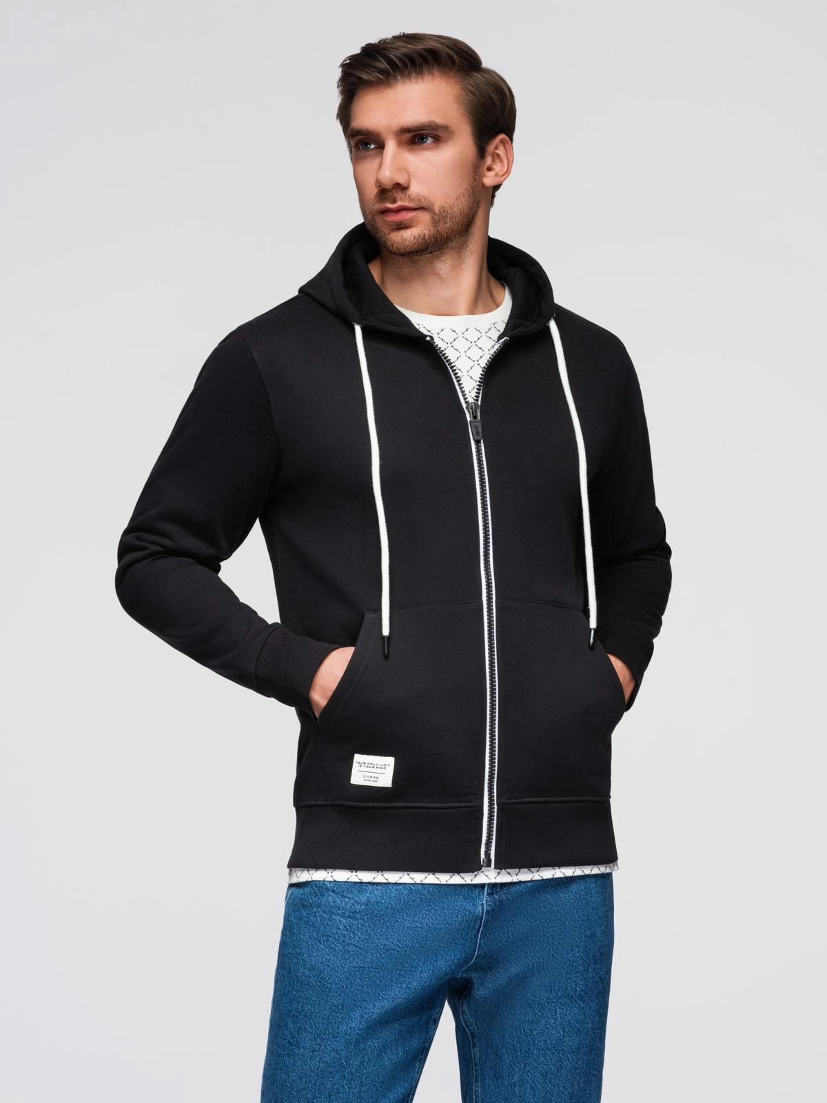 Men's BASIC unbuttoned hooded sweatshirt - black V5 OM-SSBZ-0178