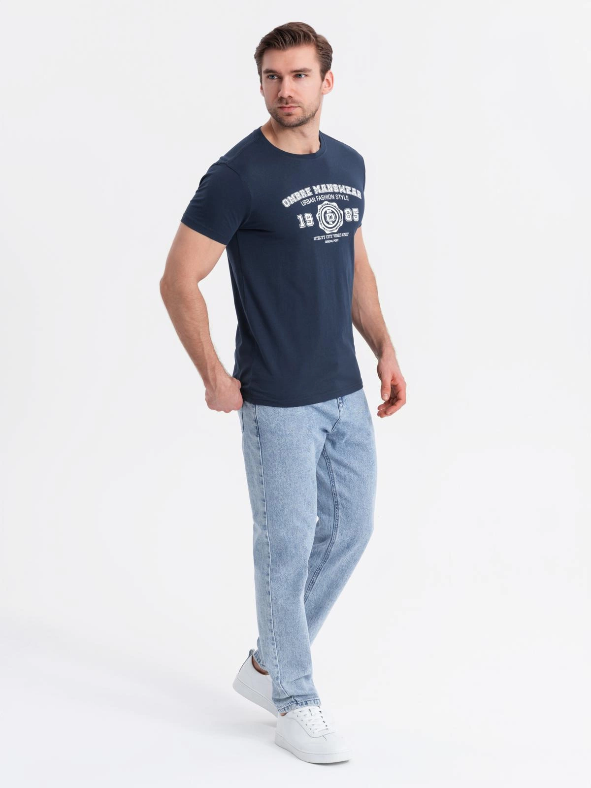 Men's cotton t-shirt with college style print - navy blue V3 OM-TSPT-0137