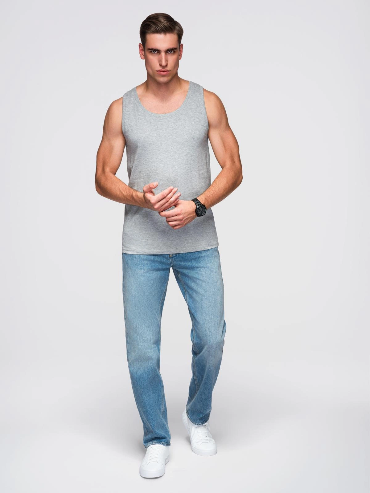 Men's BASIC cotton tank top - grey melange V2 OM-TSBT-0192