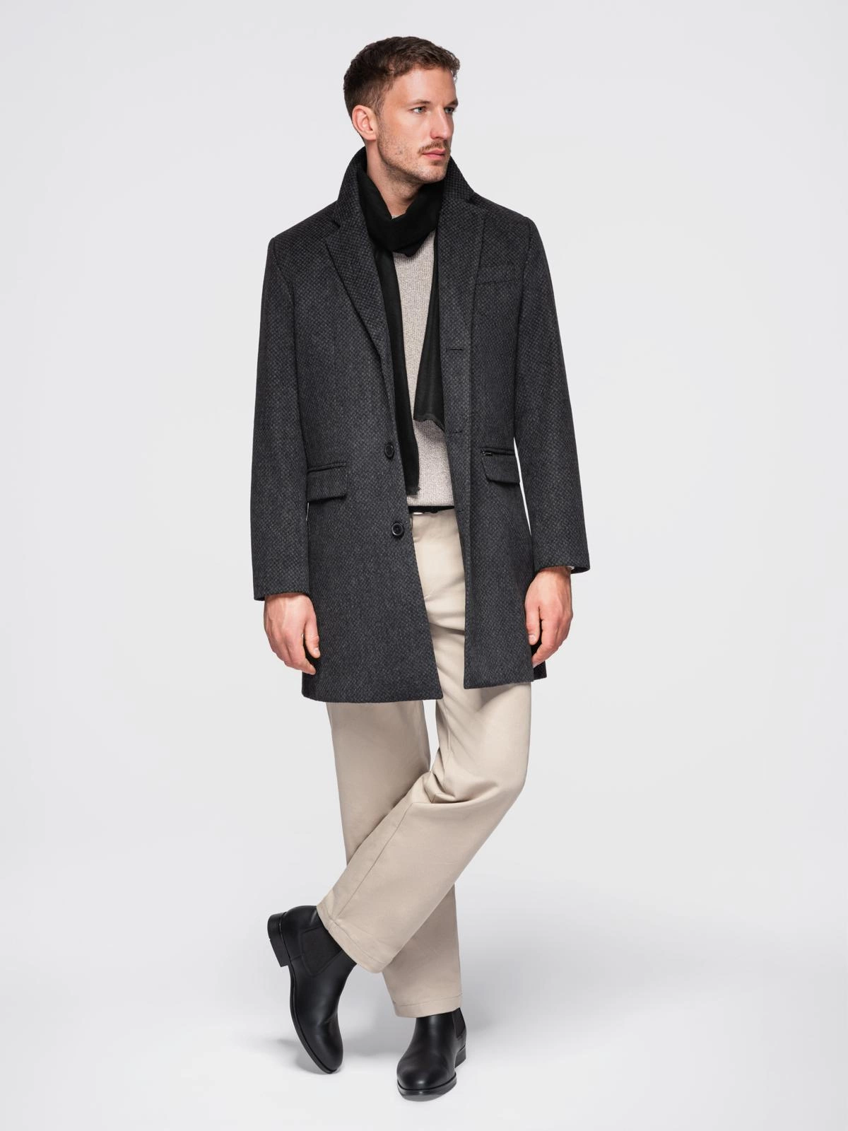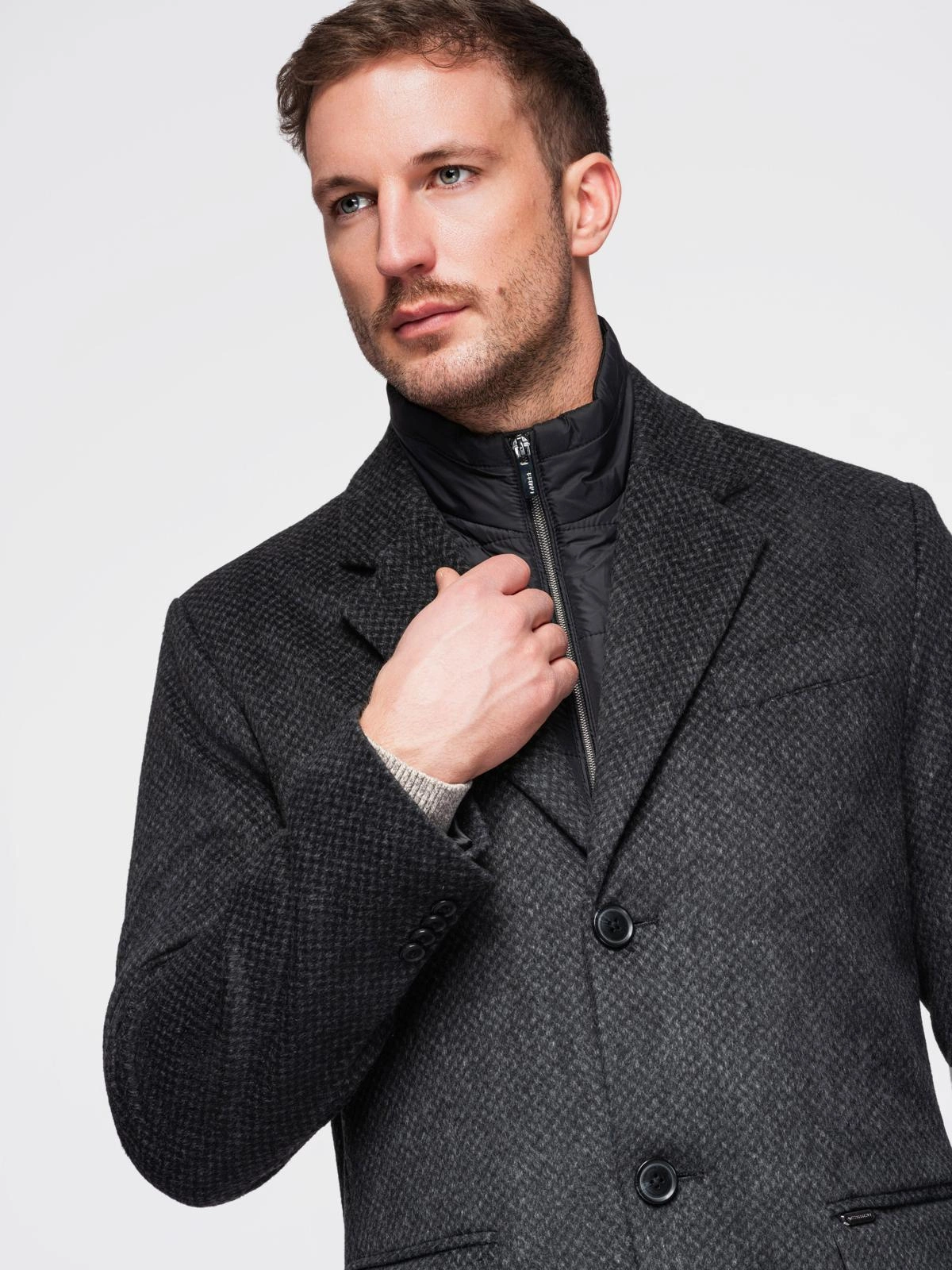 Unbuttoned men's wool blend coat - graphite V2 OM-COWC-0121