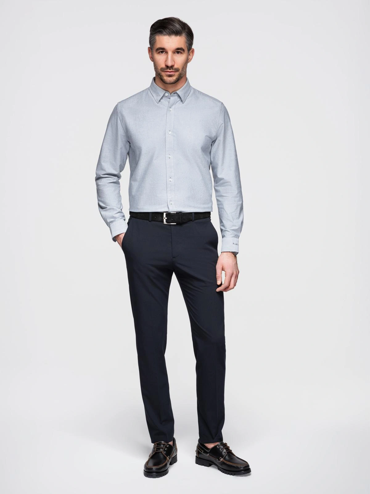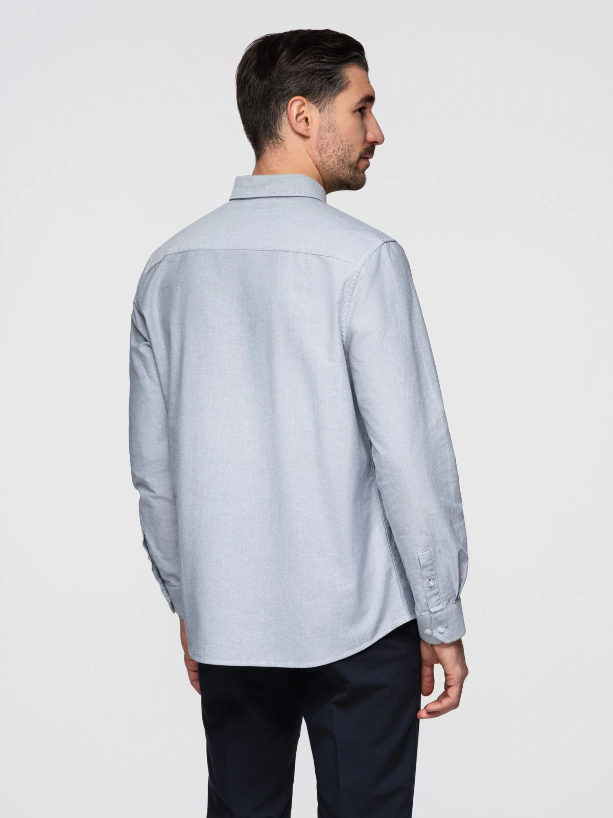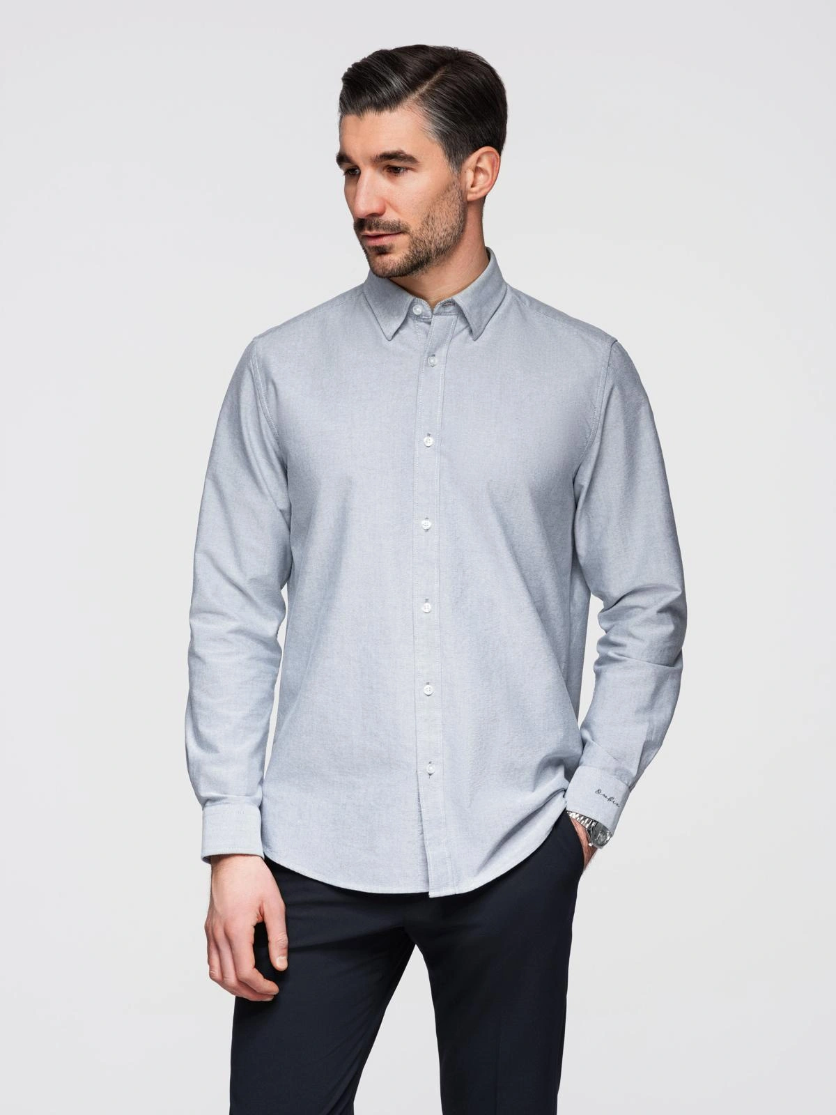 Elegant men's oxford shirt with embroidery - light grey V2 OM-SHOS-0172