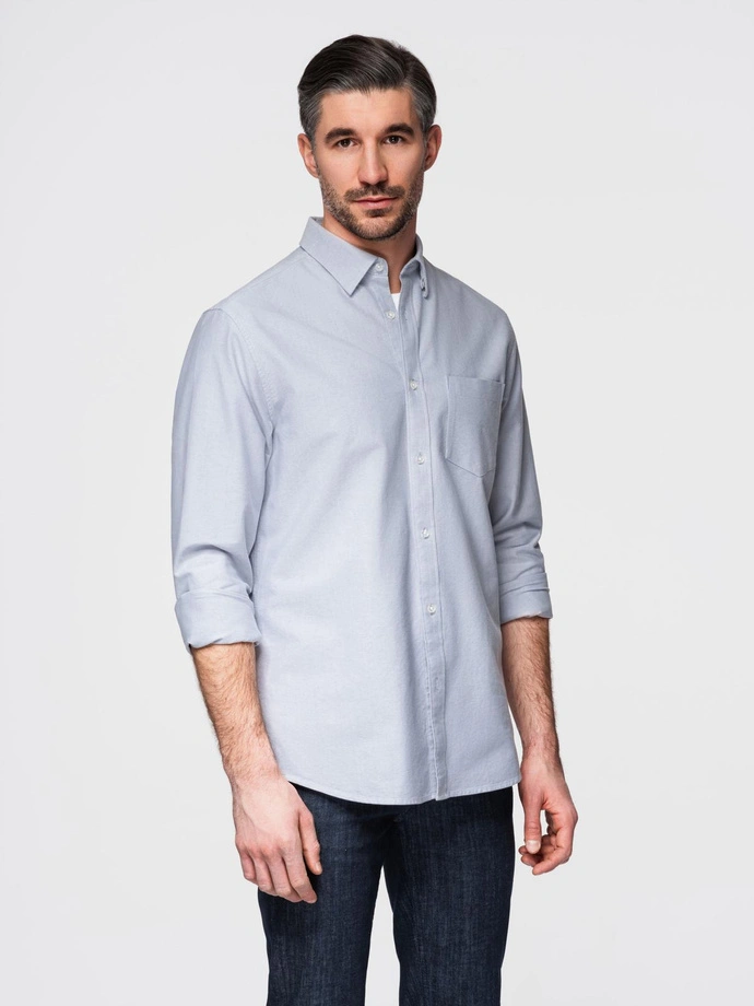 Elegant men's oxford shirt with embroidery and pocket - blue V1 OM-SHOS-0173