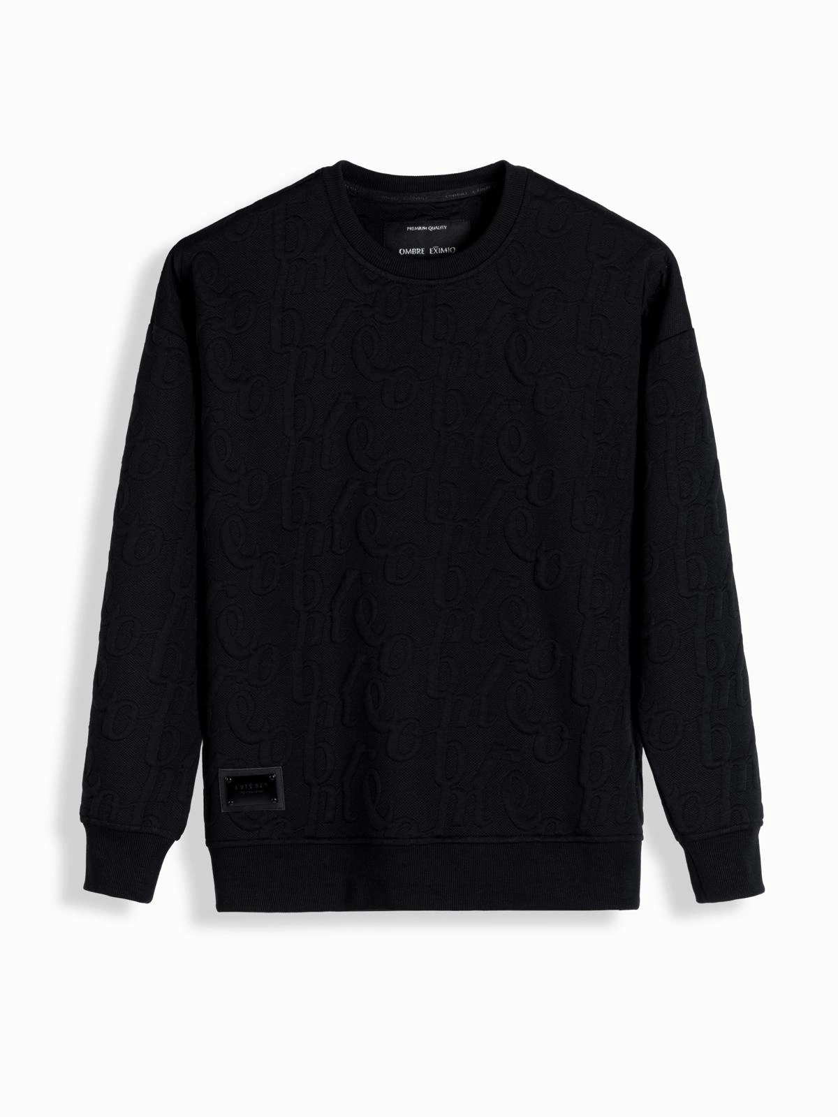 Men's RELAXED FIT sweatshirt with embossed letters - black V1 OM-SSNZ-0164