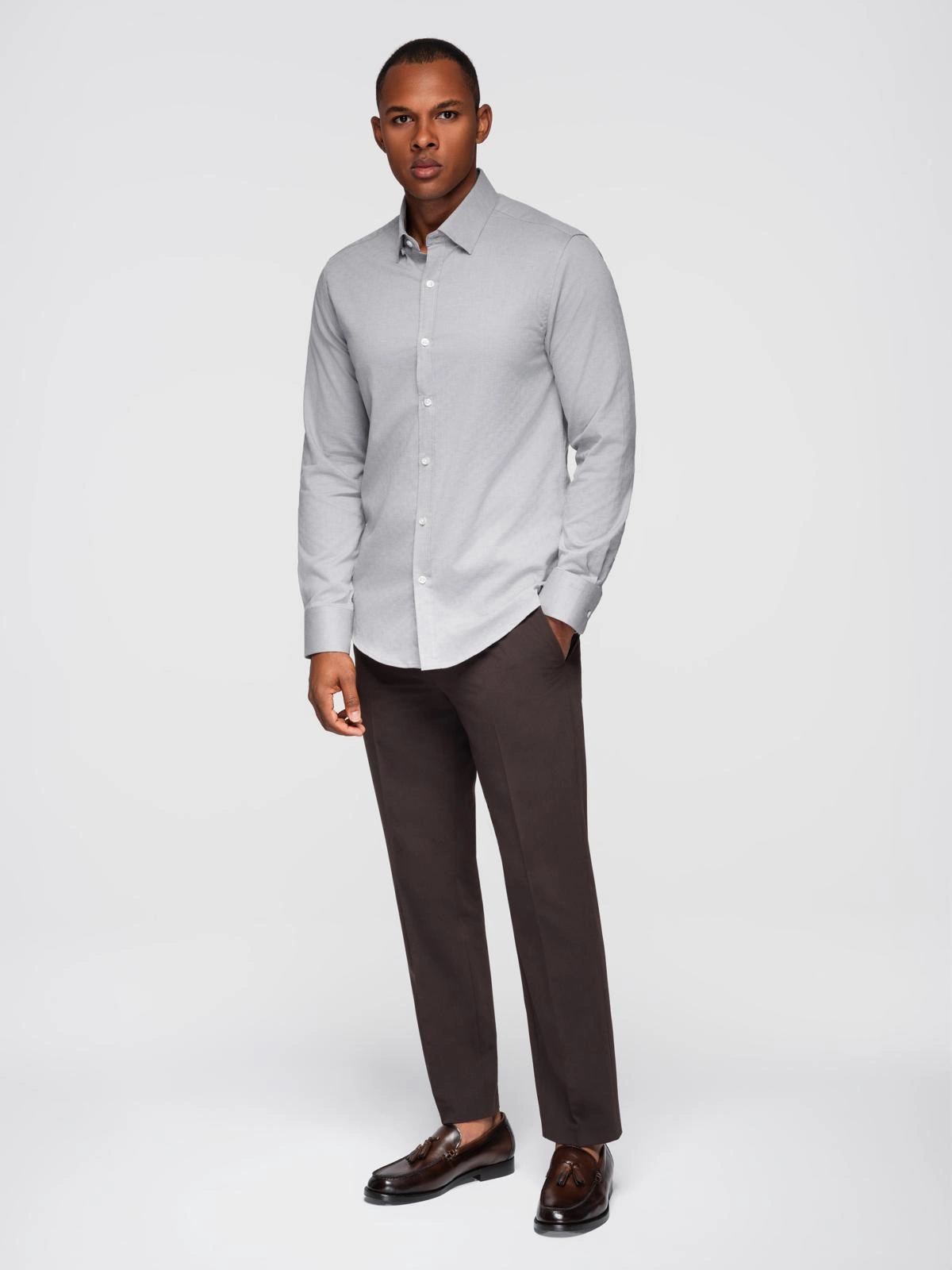 Men's SLIM FIT shirt in decorative fabric - gray V2 OM-SHCS-0175