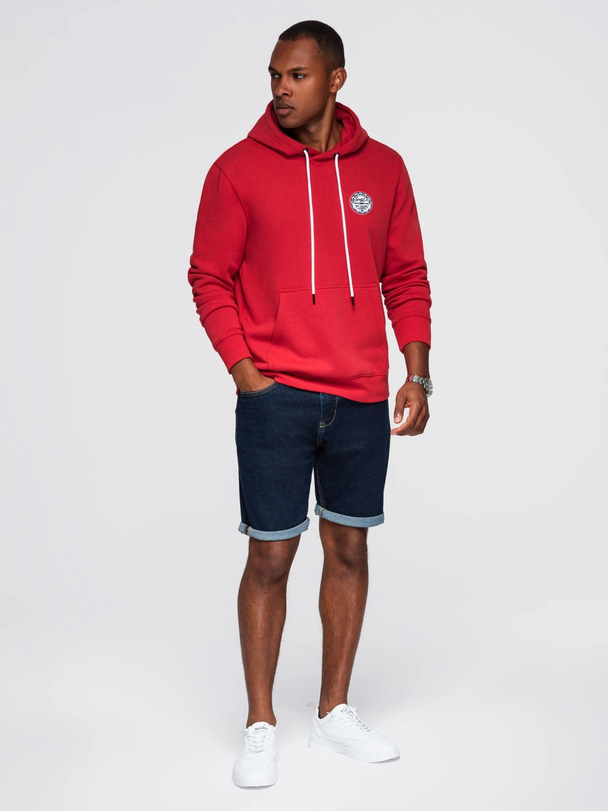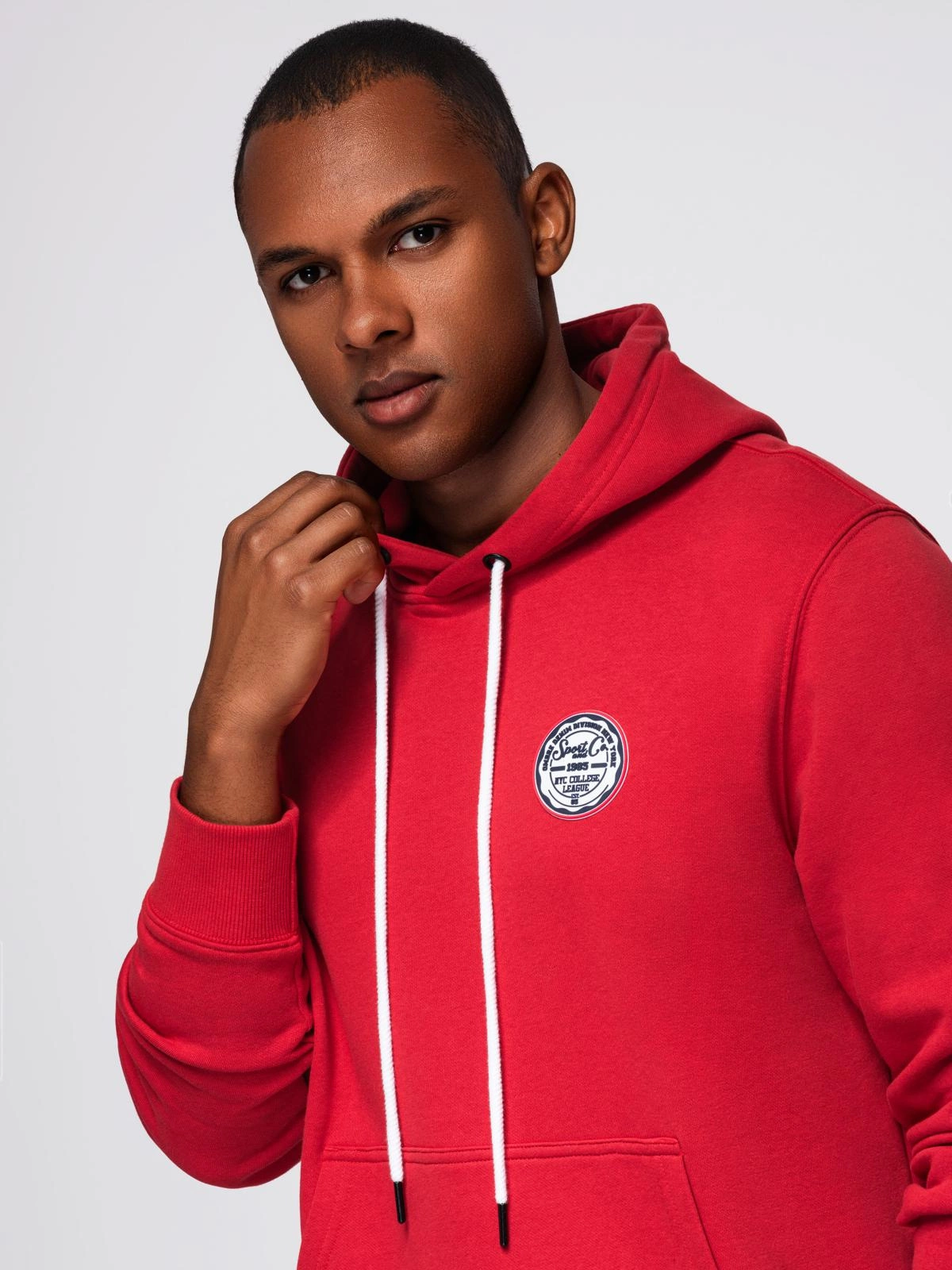 Men's kangaroo sweatshirt with hood and college style patch - red V1 OM-SSNZ-0144