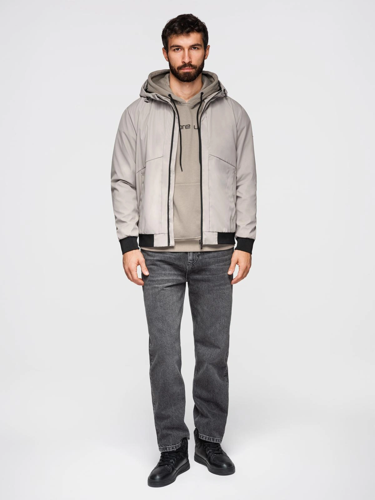Men's lightweight jacket with mesh lining and hood - grey V6 OM-JANP-0149