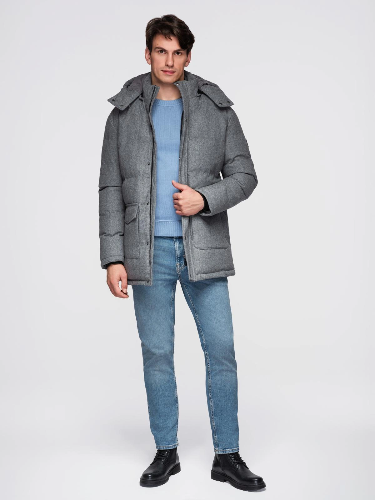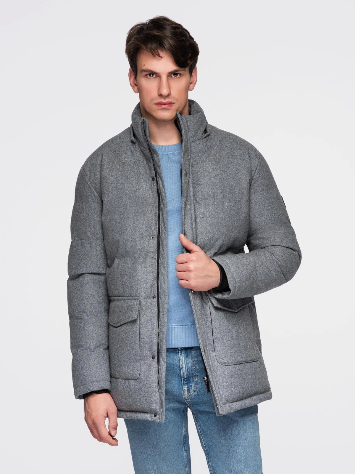 Warm long men's parka jacket with wool - grey melange V1 OM-JALJ-0217