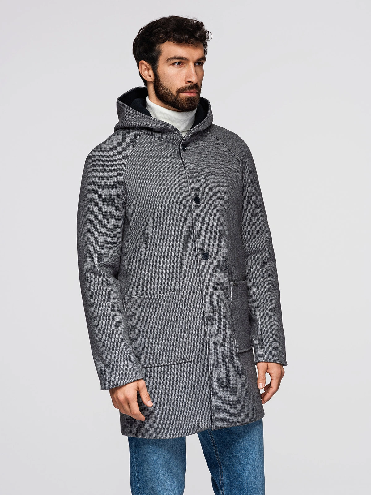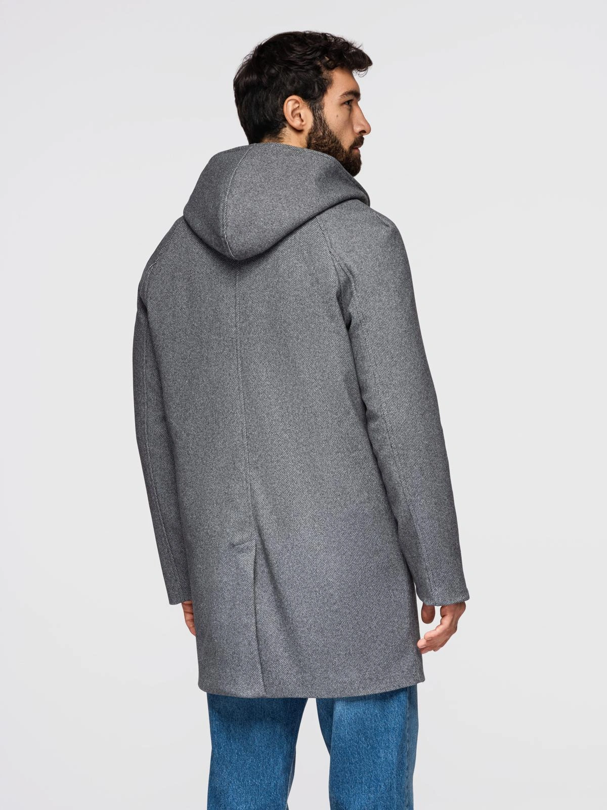 Men's melange long coat with hood - grey V1 OM-COWC-0122