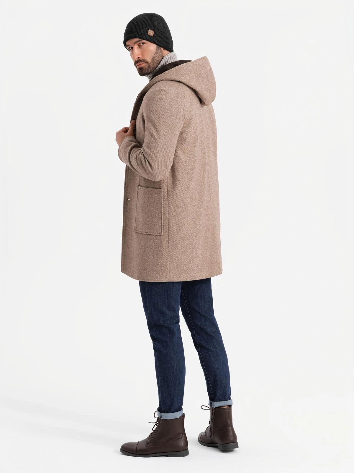 Melange long men's hooded coat - beige V2 OM-COWC-0122