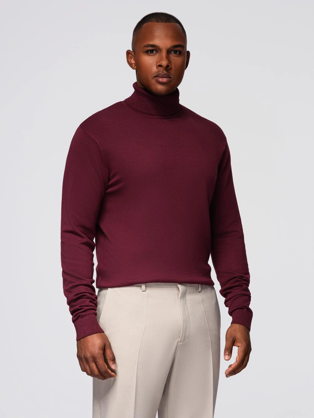 Men's single color knitted turtleneck with viscose - maroon V4 OM-SWTN-0101