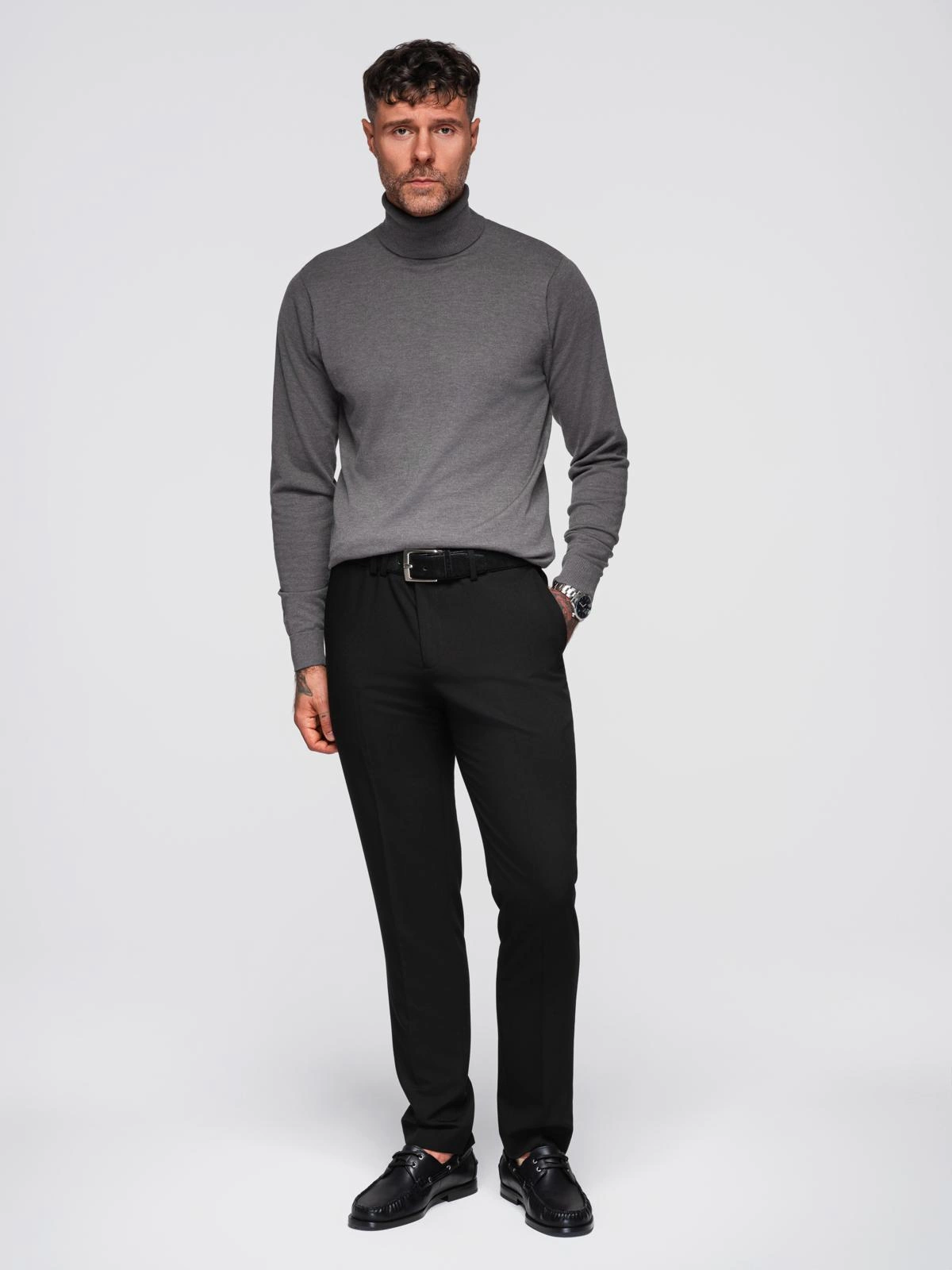 One color men's knitted turtleneck with viscose - grey melange V2 OM-SWTN-0101