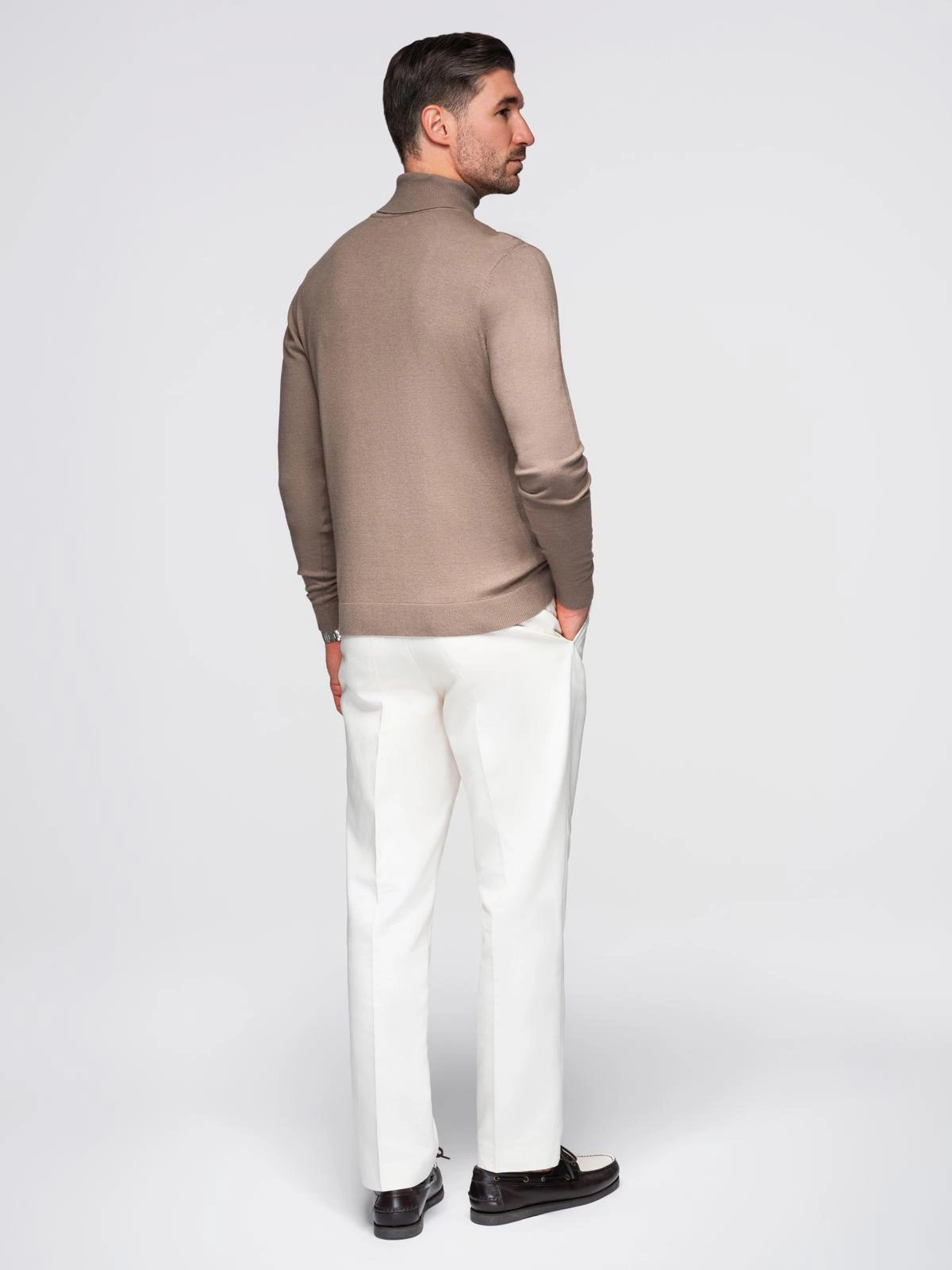 Men's knitted turtleneck with viscose - dark beige V3 OM-SWTN-0127