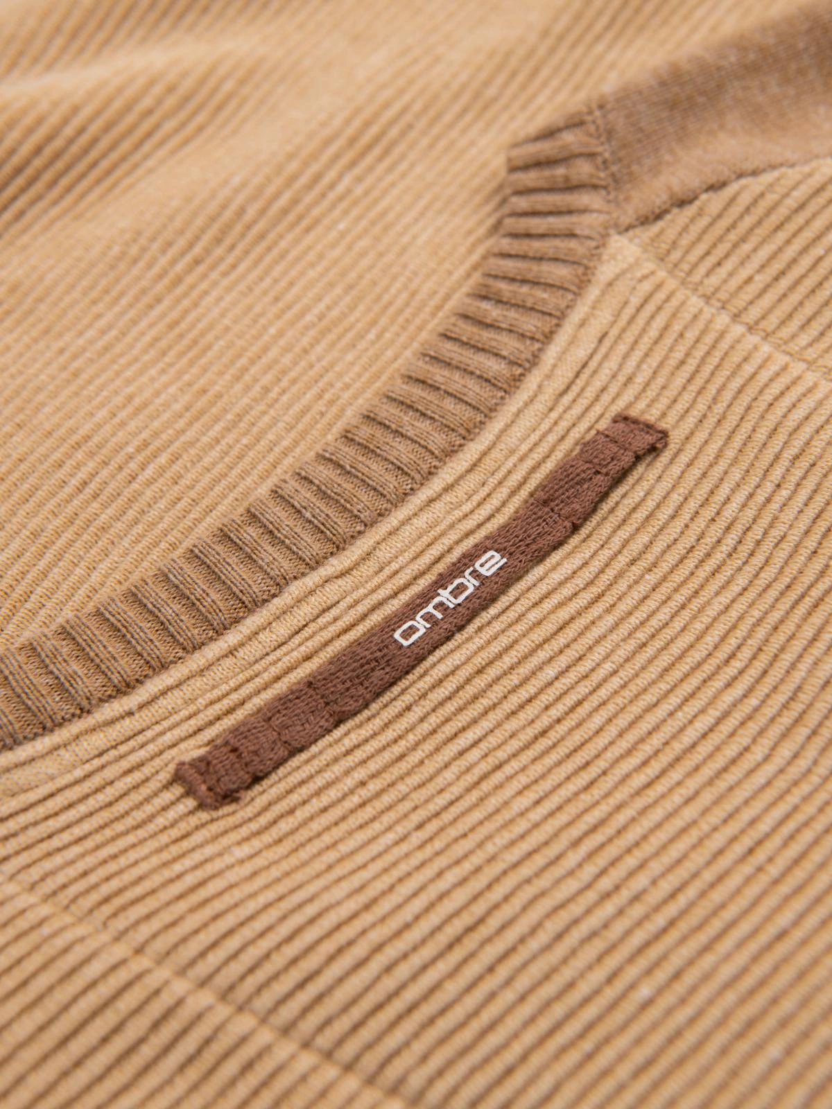 Men's cotton sweater with patch and raglan sleeves - brown V4 OM-SWSW-0121