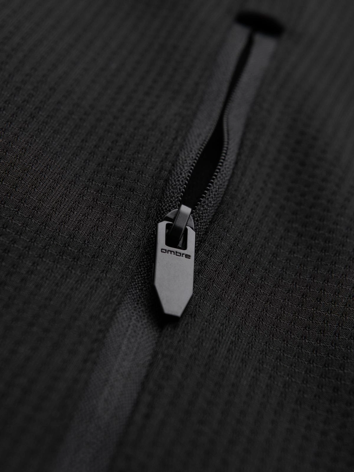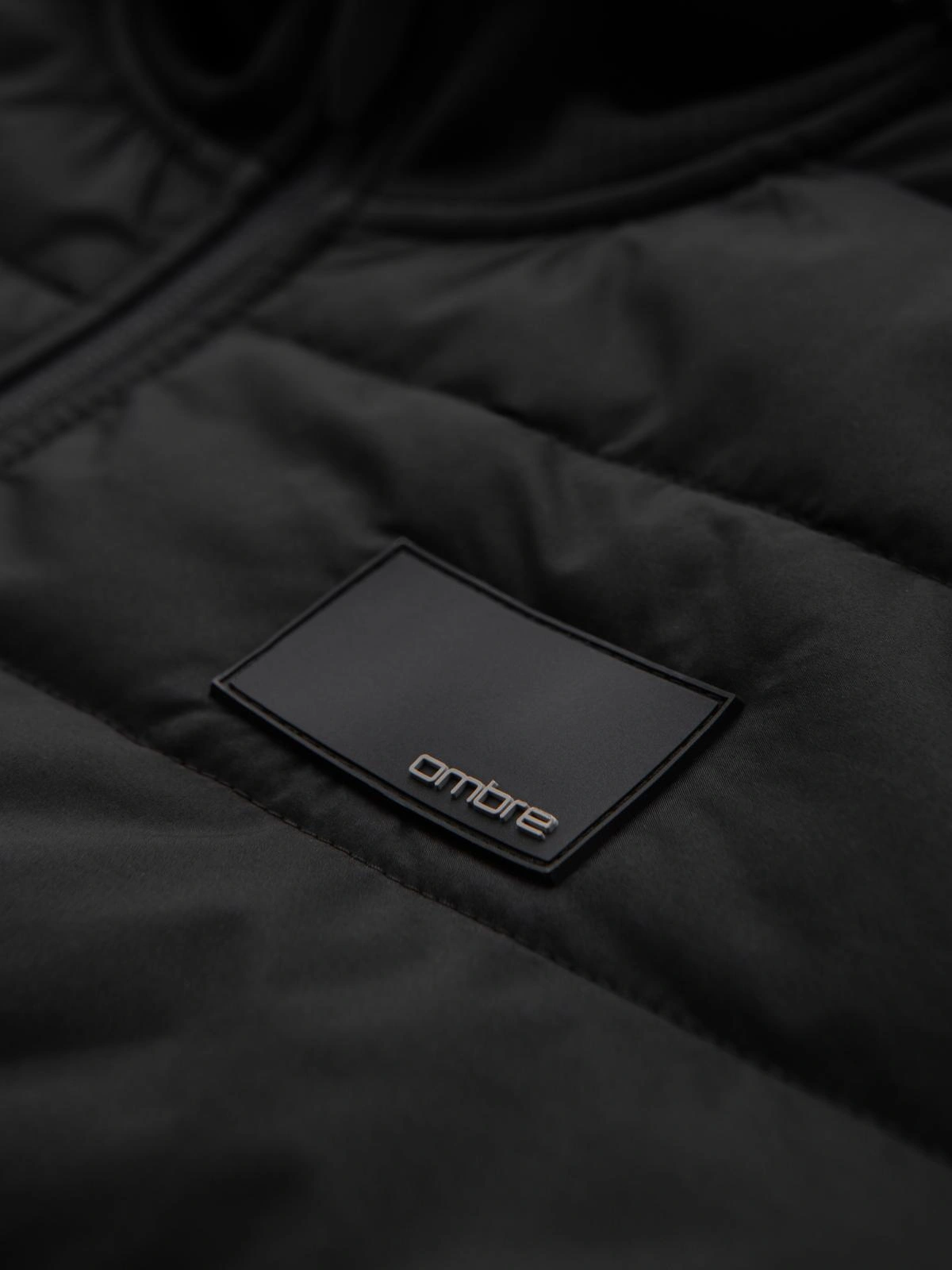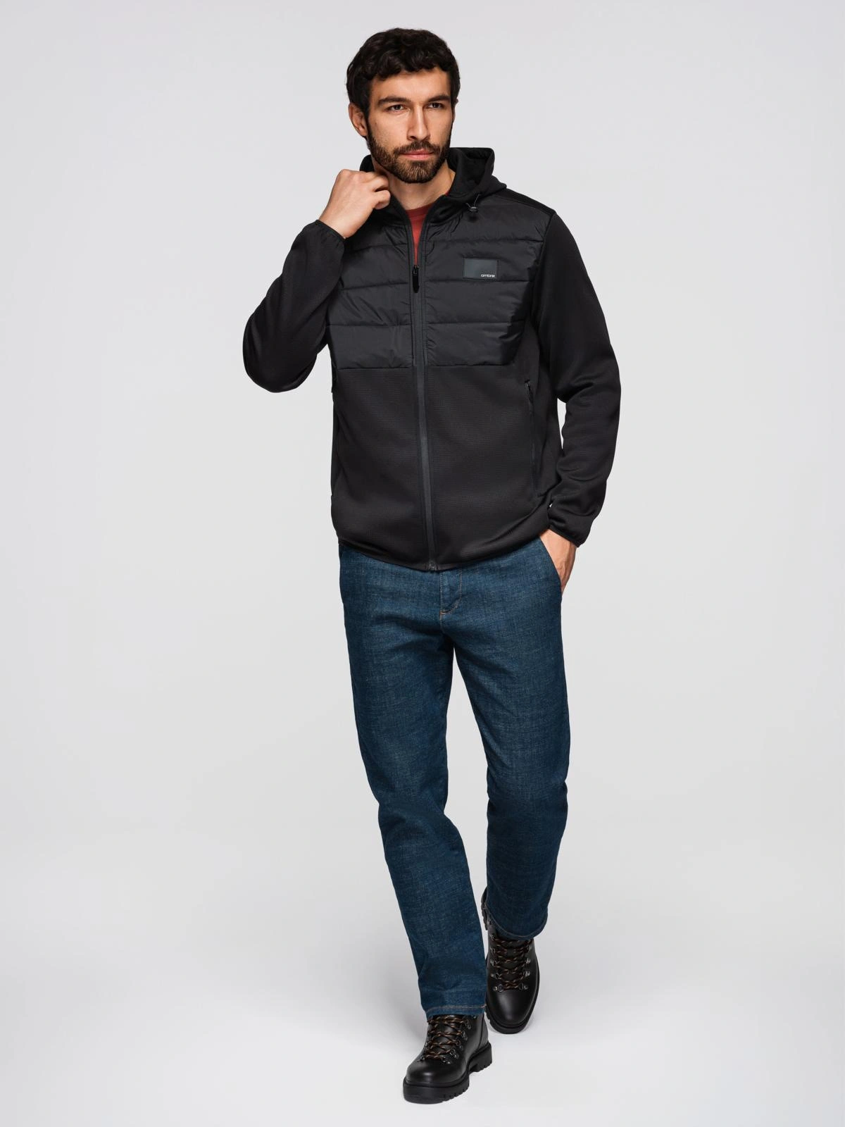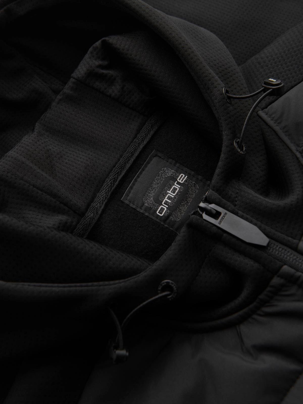 Men's lightweight jacket of combined materials with hood and decorative quilting - black V5 OM-JANP-0160
