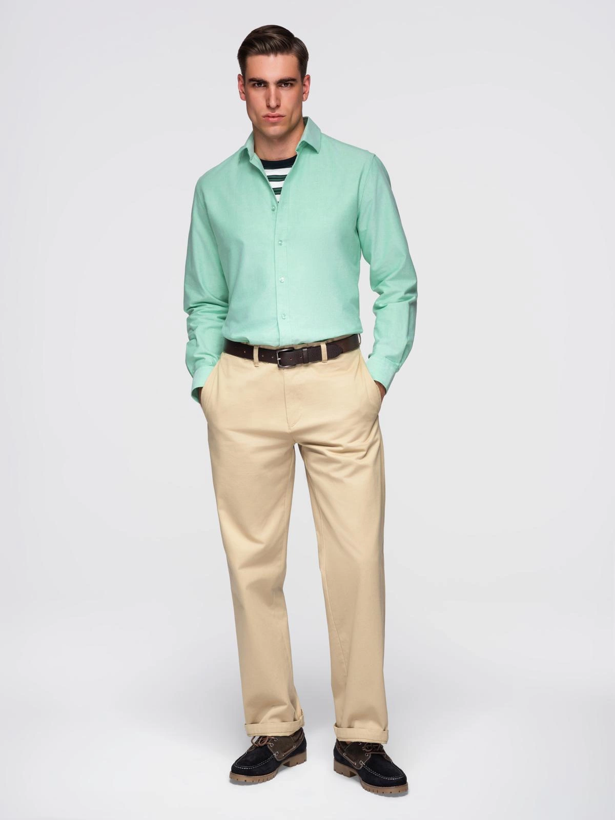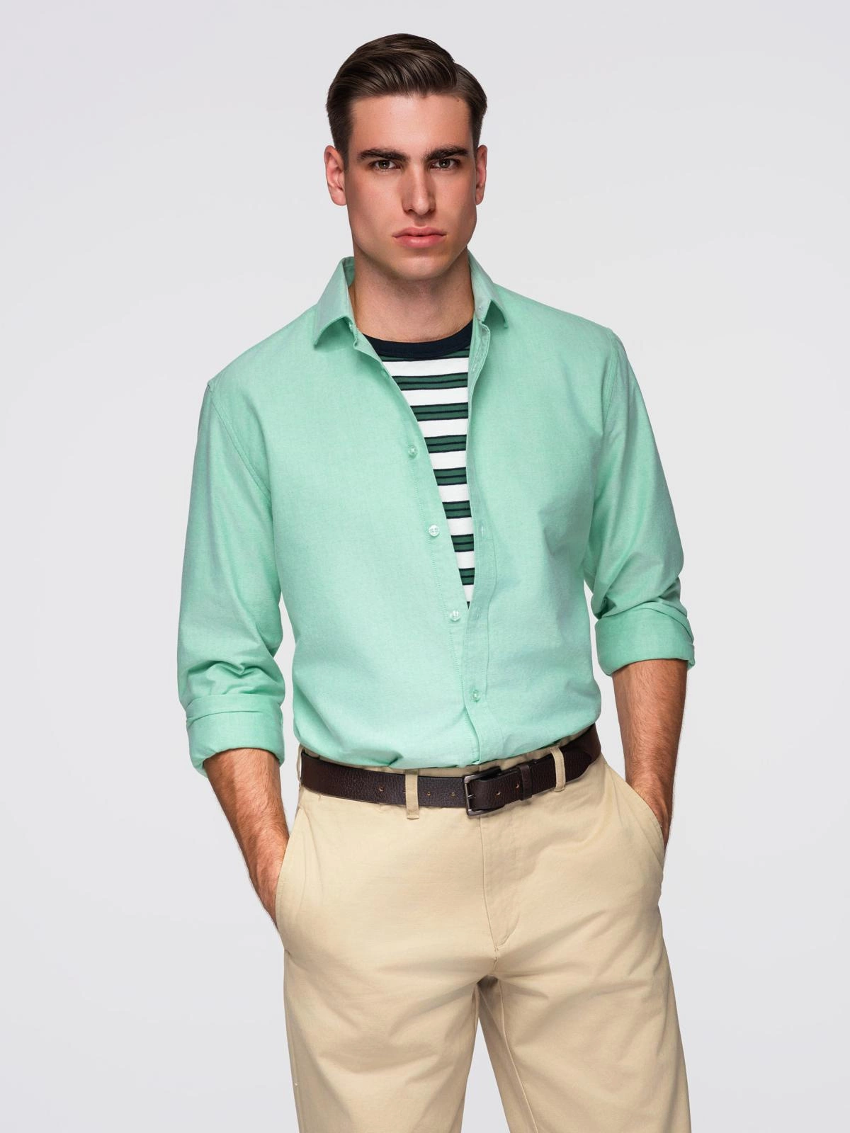 Men's pastel cotton oxford shirt - mint V4 OM-SHOS-0183