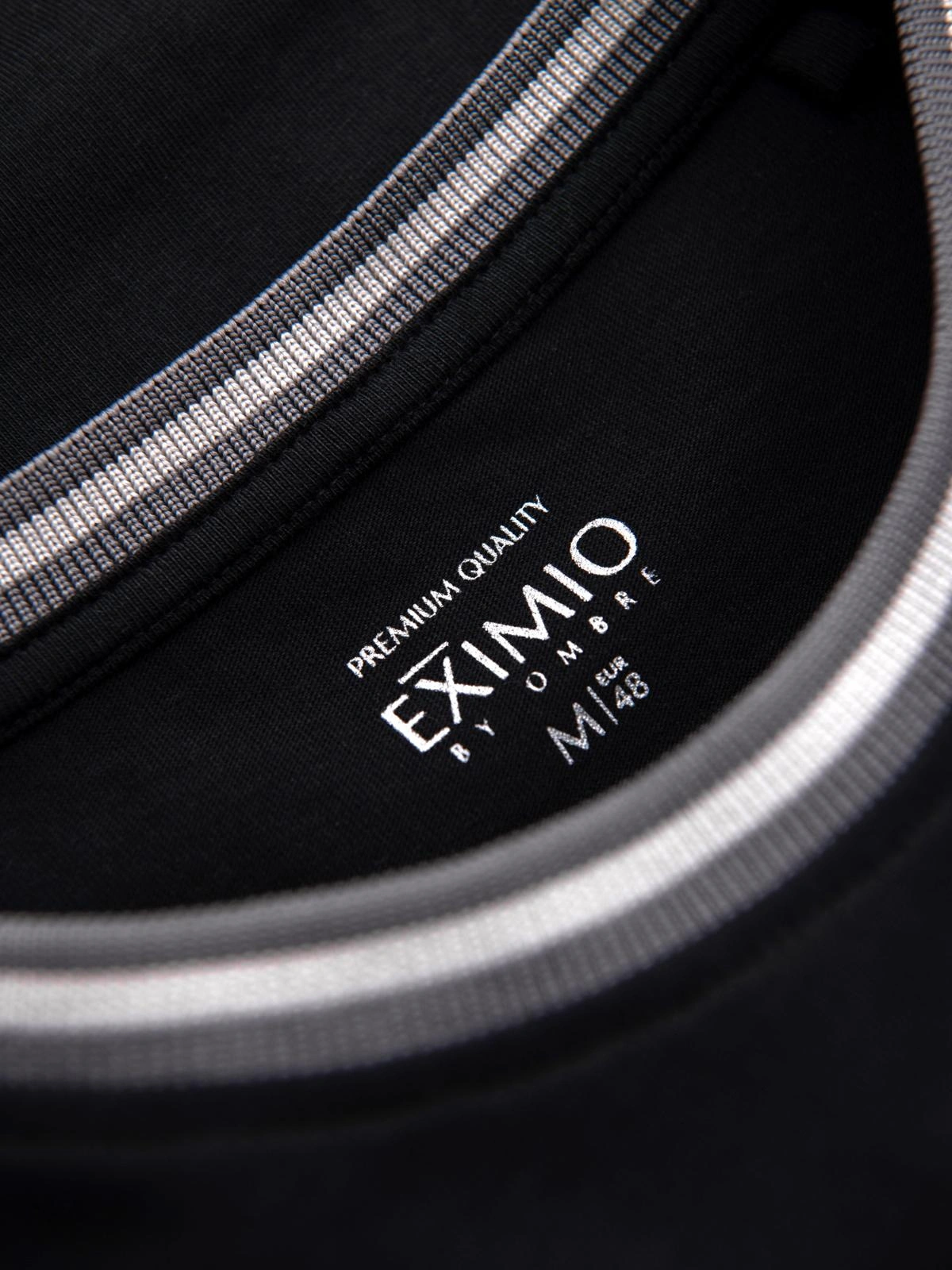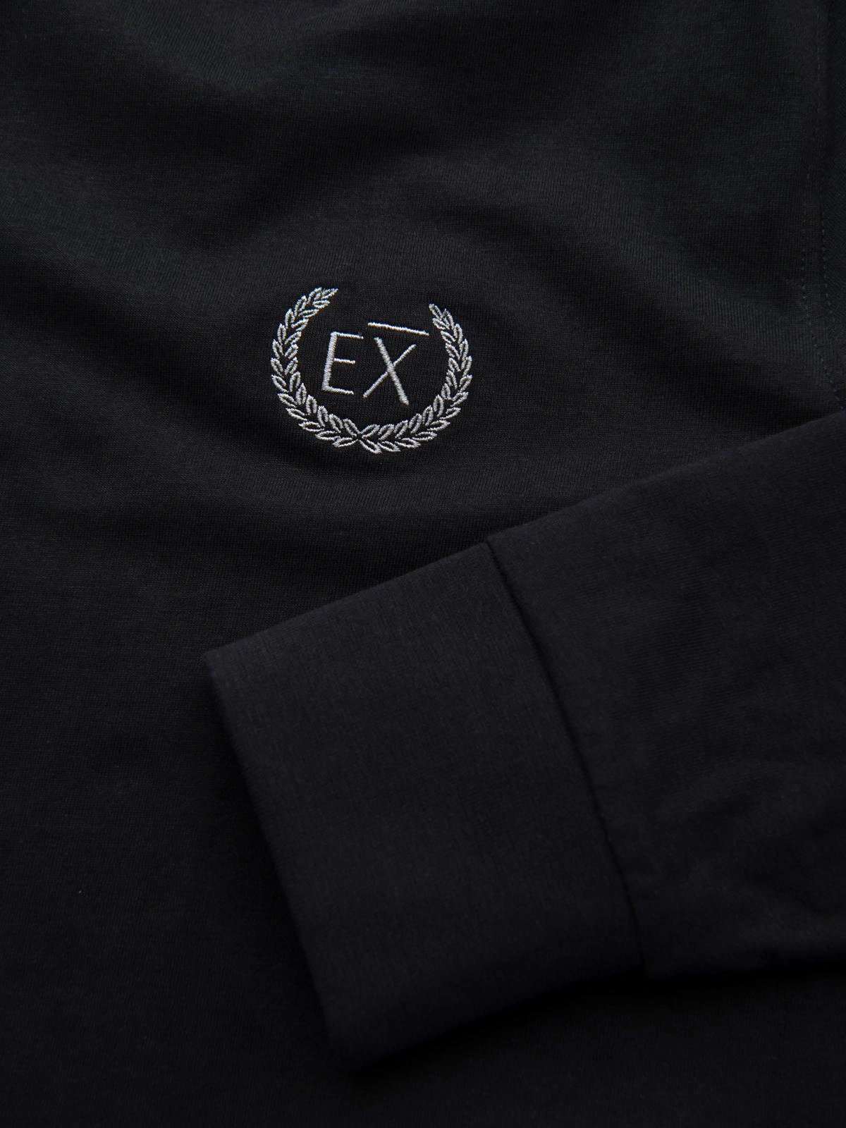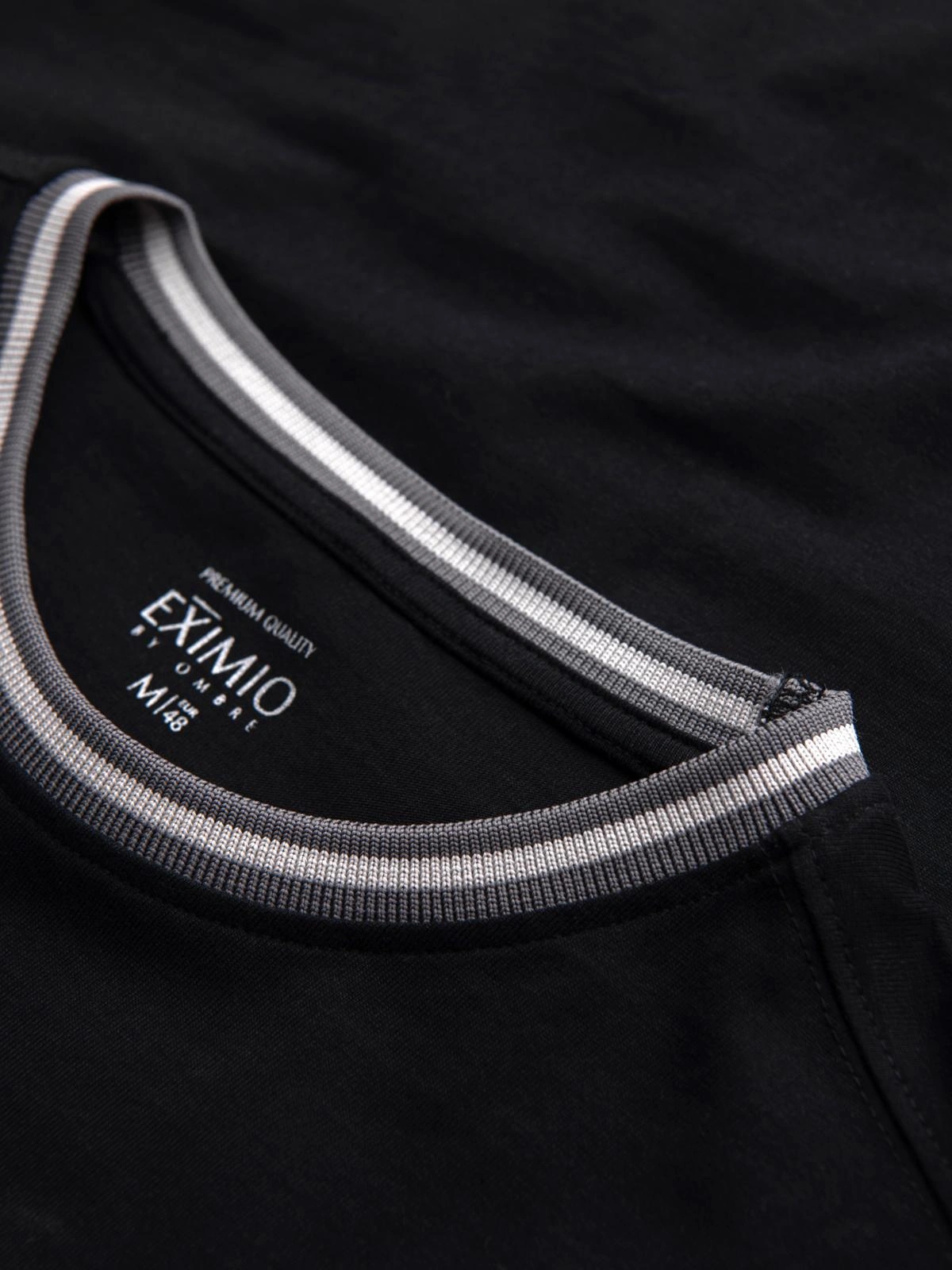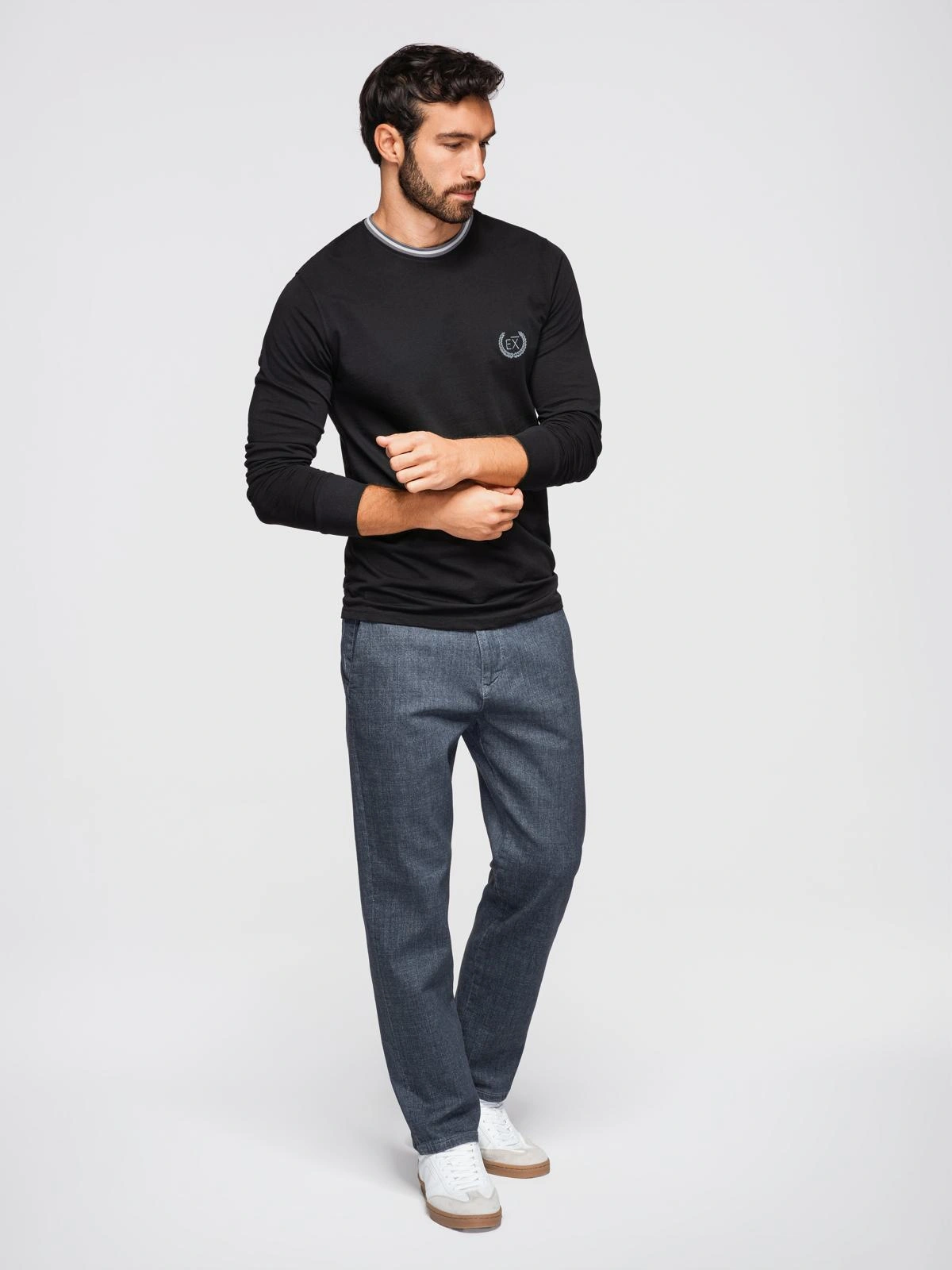 Men's cotton longsleeve with striped U neckline and embroidery - black V4 OM-LSCL-0128