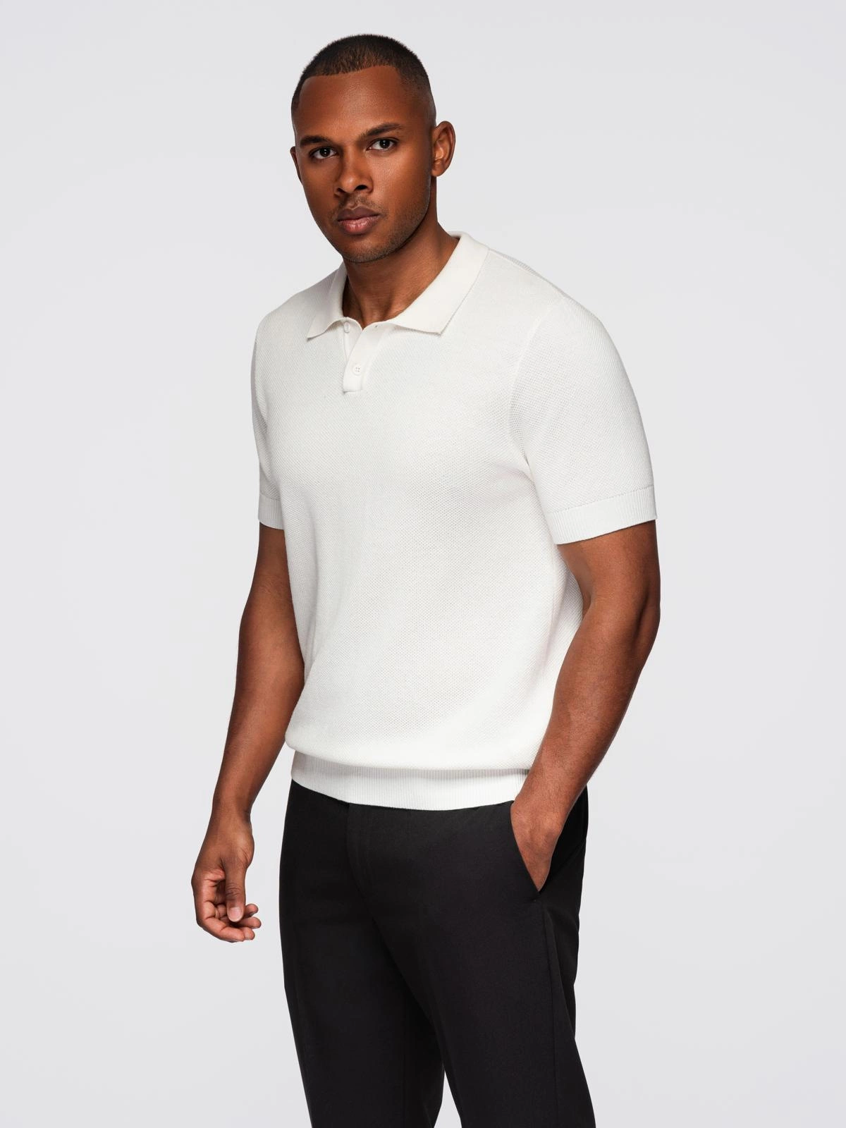Men's cotton structured knit polo shirt - broken white V4 OM-POSS-0117
