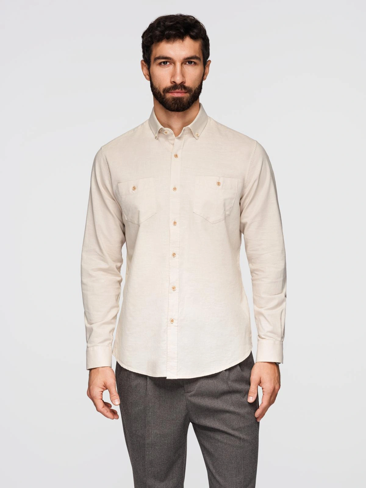 Men's linen shirt with classic collar and pockets REGULAR FIT - cream V3 OM-SHCS-0134