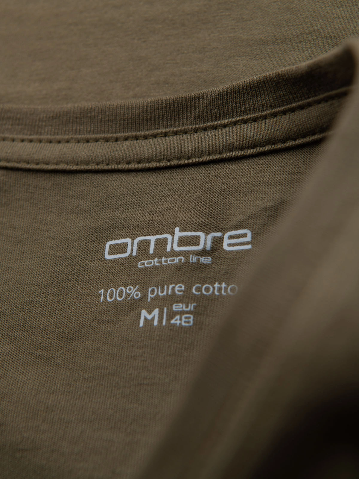 Men's BASIC classic cotton T-shirt with a serape neckline - dark olive V6 OM-TSBS-0237