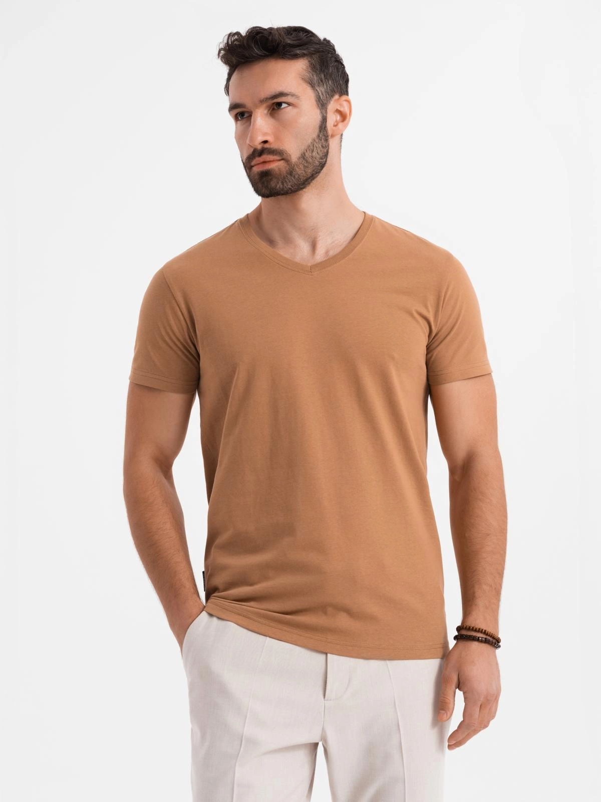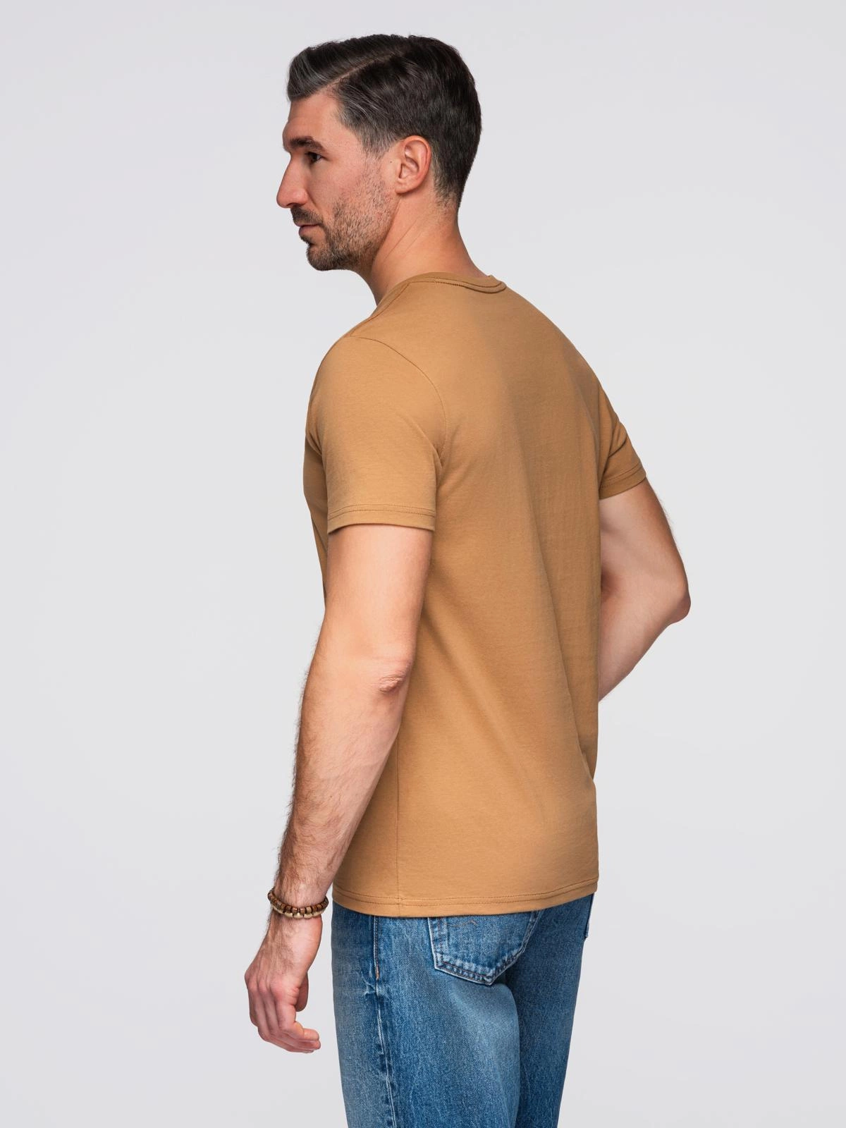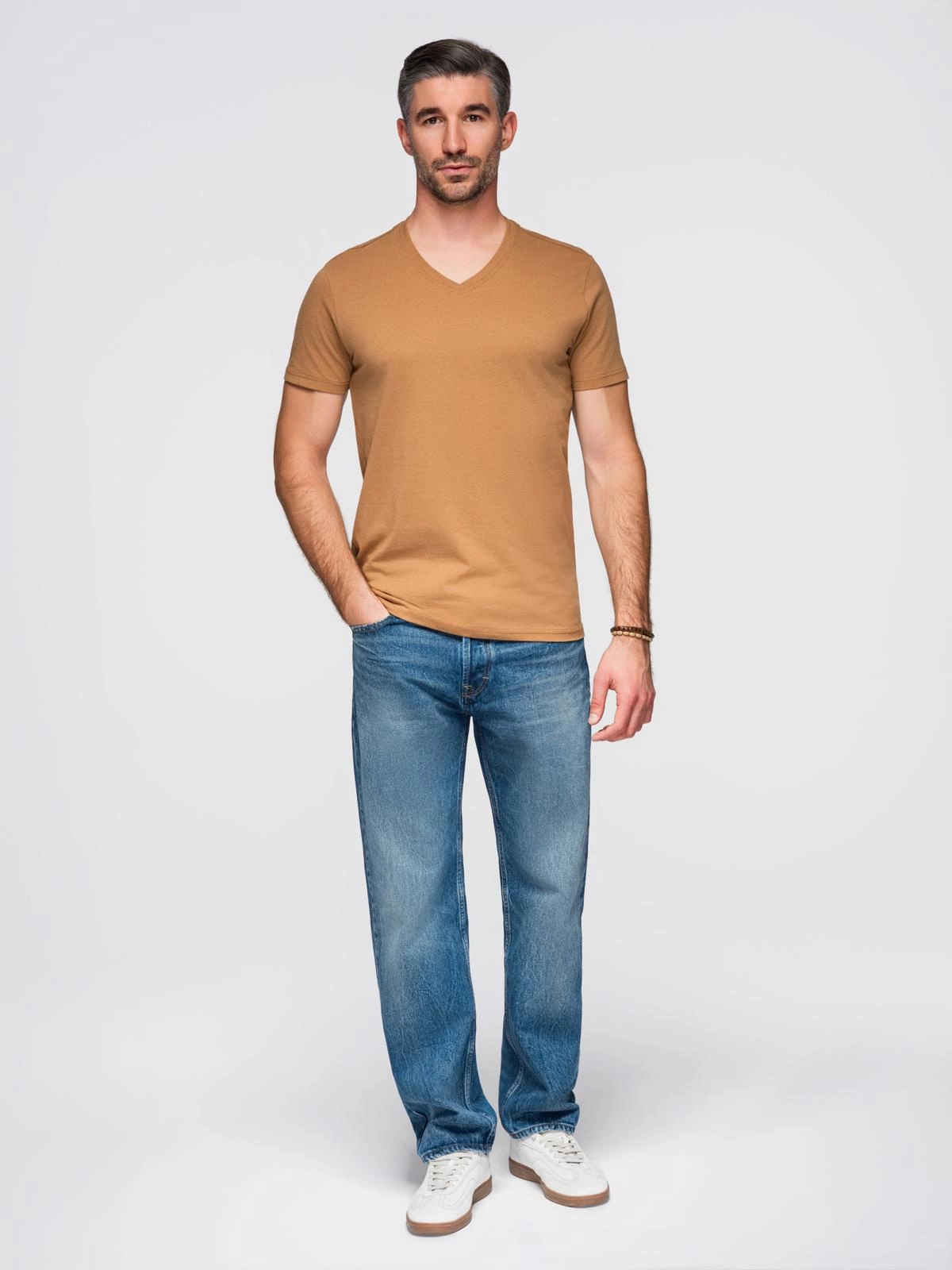 Men's BASIC classic cotton T-shirt with a v-neck - brown V9 OM-TSBS-0237