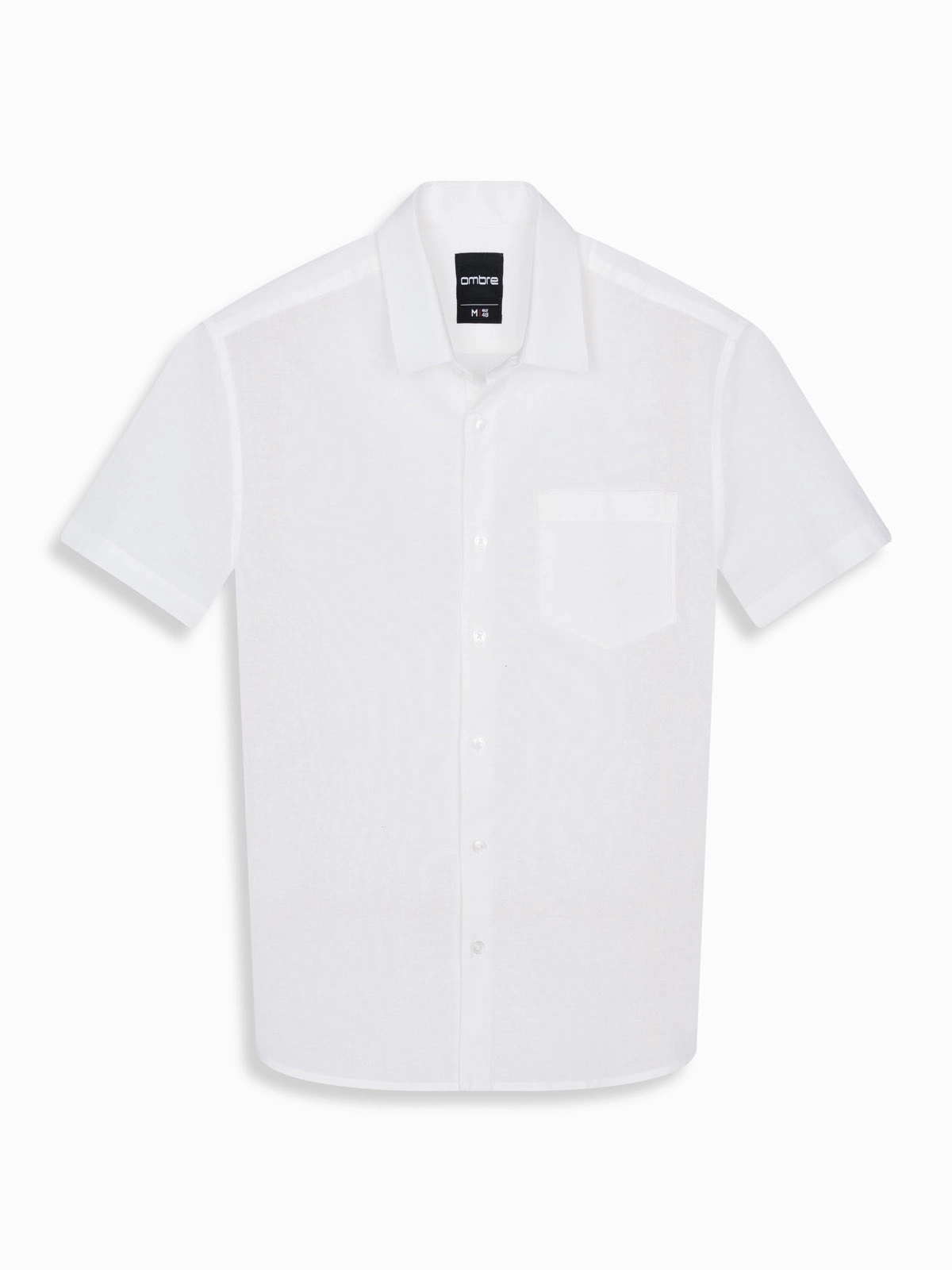 Men's short-sleeved linen-cotton shirt with pocket - broken white V1 OM-SHSS-0167