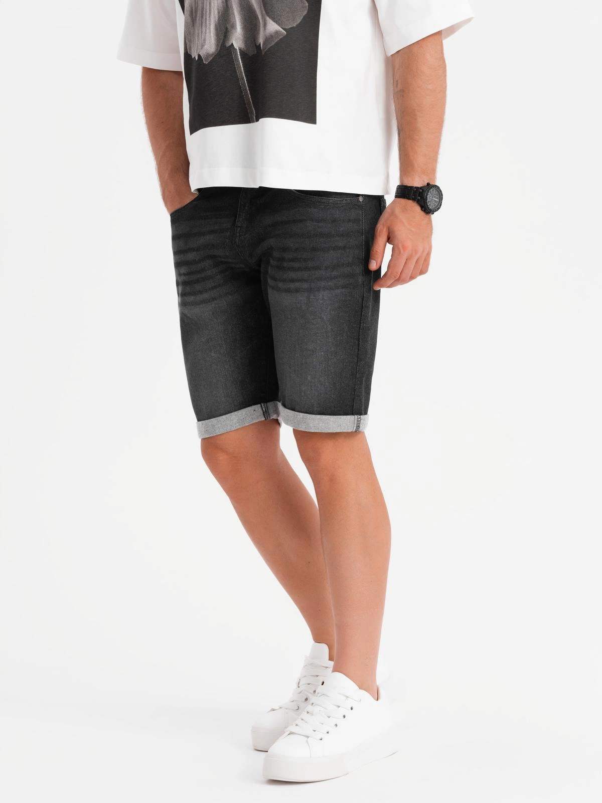 Men's denim shorts with rolled up leg - black V3 OM-SRDS-0164