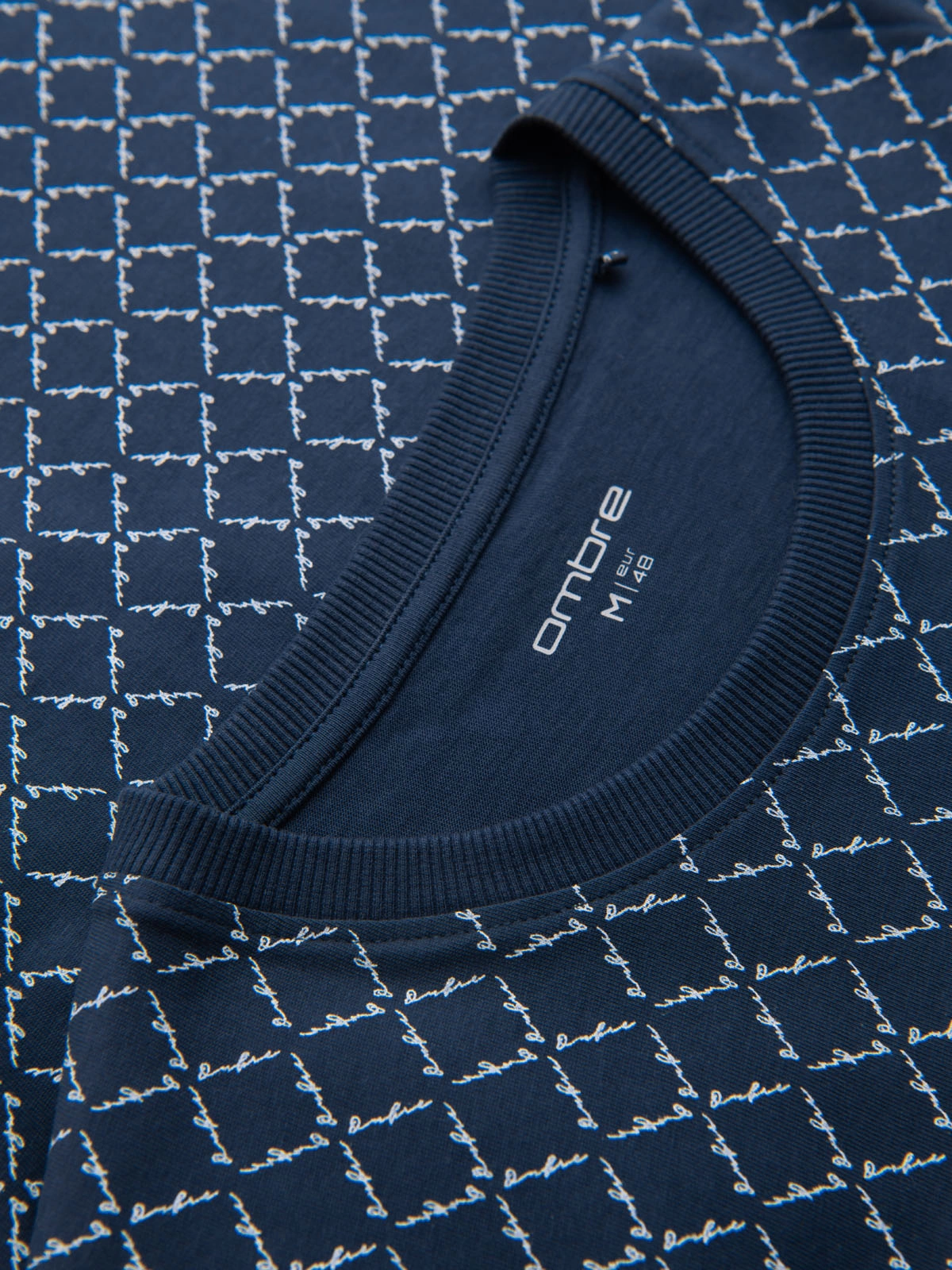 Men's full print knit shirt - navy blue V1 OM-TSFP-0250