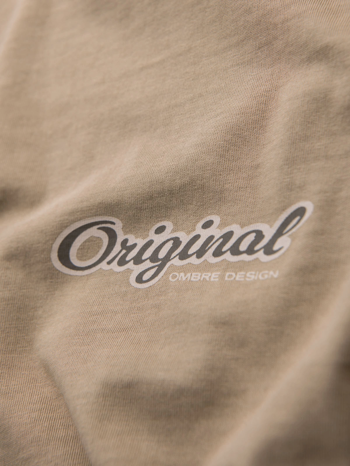 Cotton T-shirt with print on chest and back - dark beige V2 OM-TSWT-0201